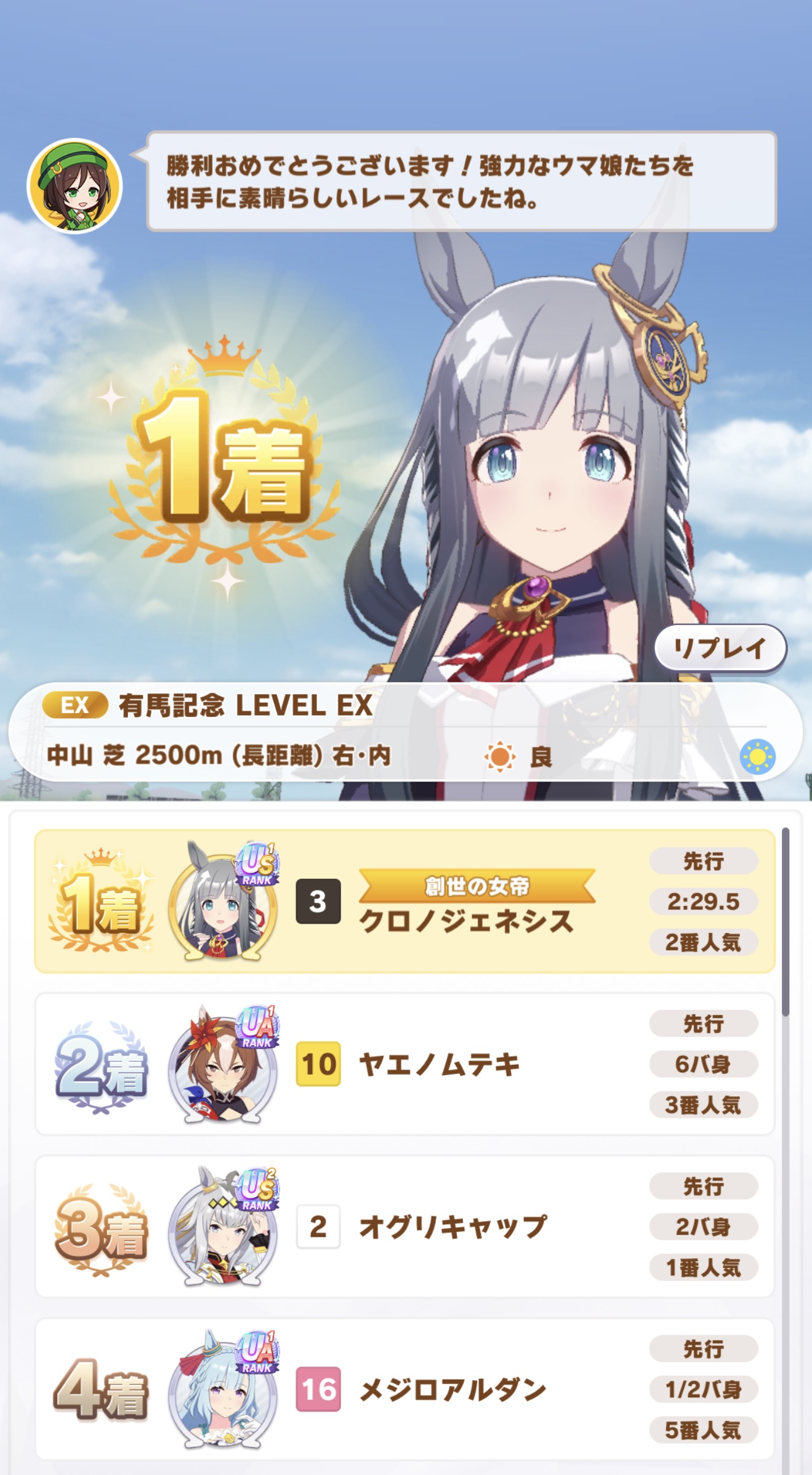 | … | 325/12/28(日)16:47:19 ID:0CrXrKHINo.1387045981+育成シナリオ時空のファルコさんの前で有馬記念で今年の競馬も終わったな〜っていう役やります |