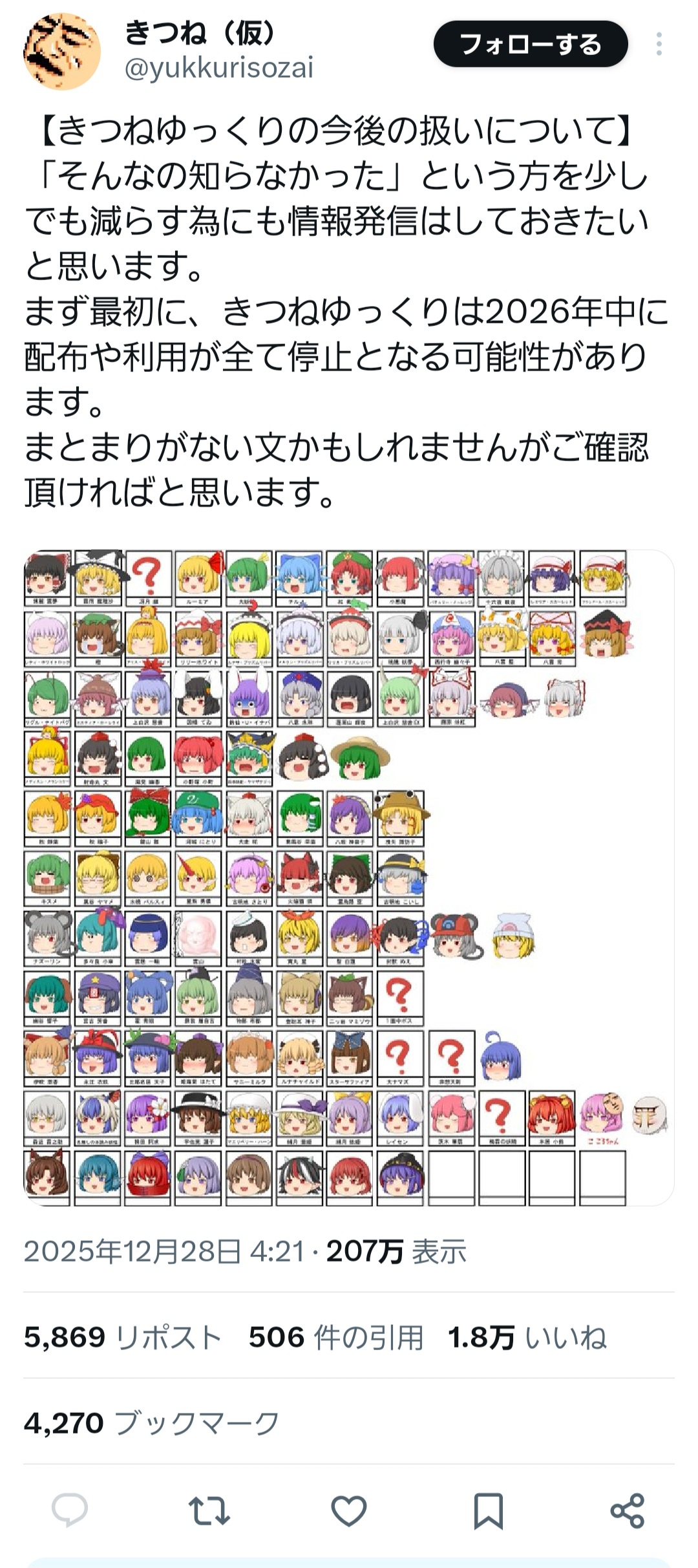 | … | 4925/12/29(月)00:50:28No.1387234361そうだねx13>よく知らんけどゆっくりってこいつが作ったコンテンツなの? |