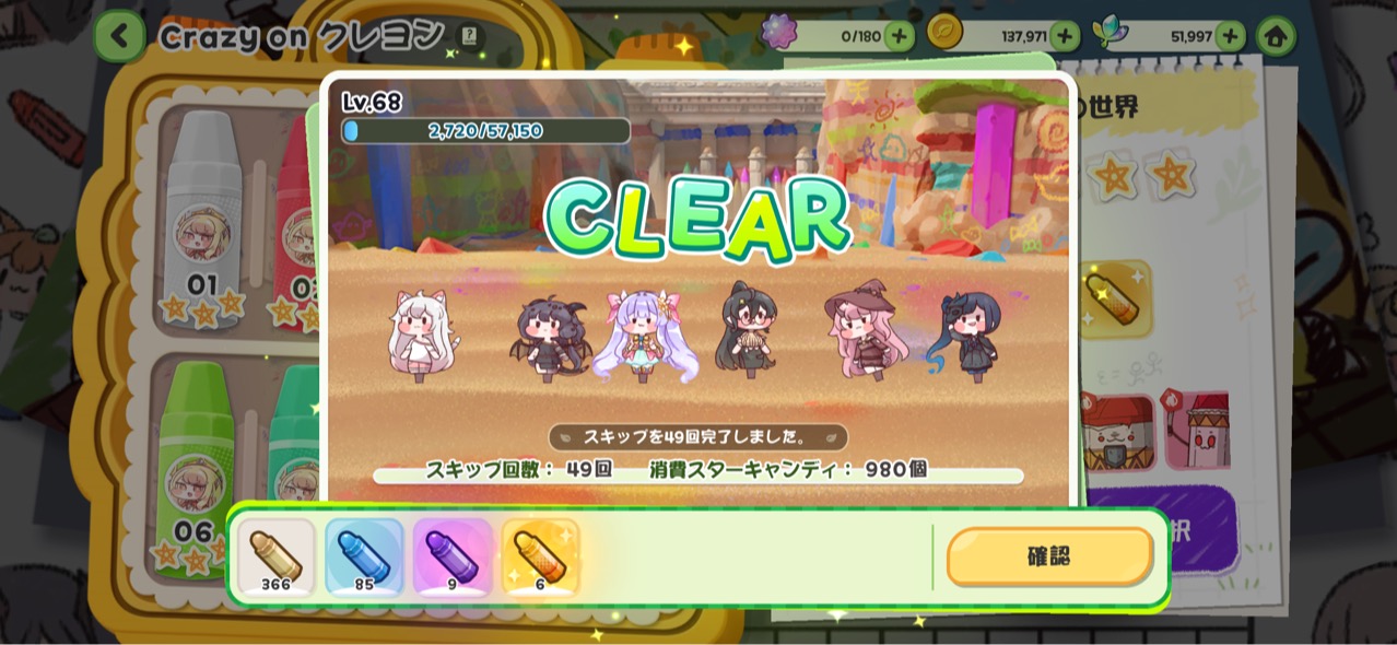 | … | 4825/12/29(月)10:35:27 ID:3QztoEeoNo.1387310648+今日よくできました全部スタキャンにしてクレヨンバトルしてきたにゃん |