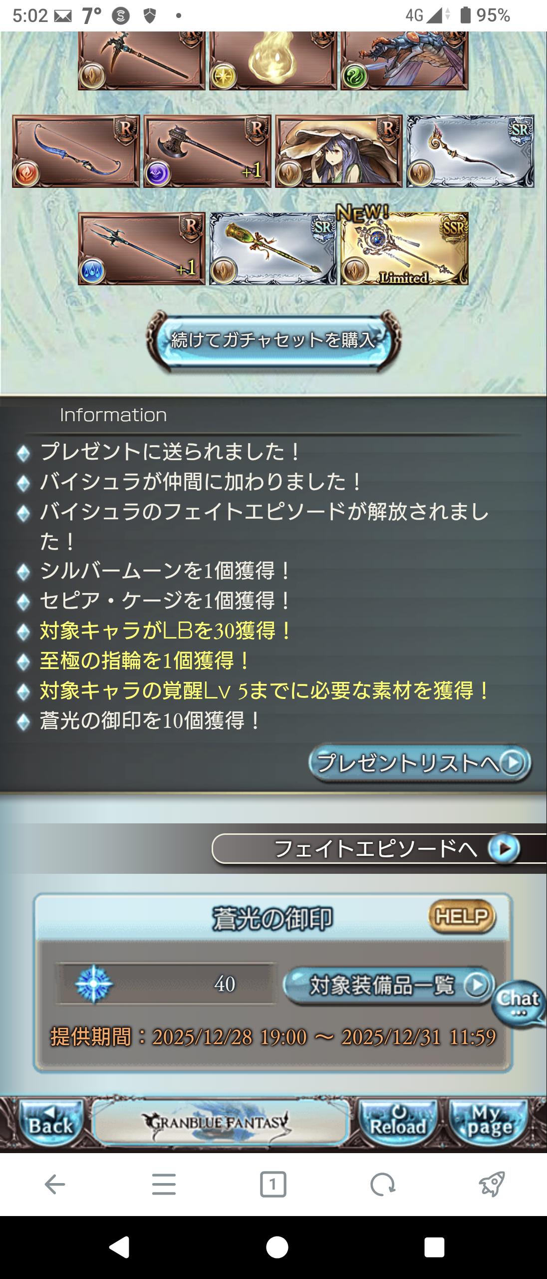| … | 2625/12/30(火)03:14:45No.1387614994+>>今日が実質ラストチャンス… >明日は切り替わってから引くのかい? 大晦日の切り替わり後はシーザーサンチラヴェルサシア石が来るから… |