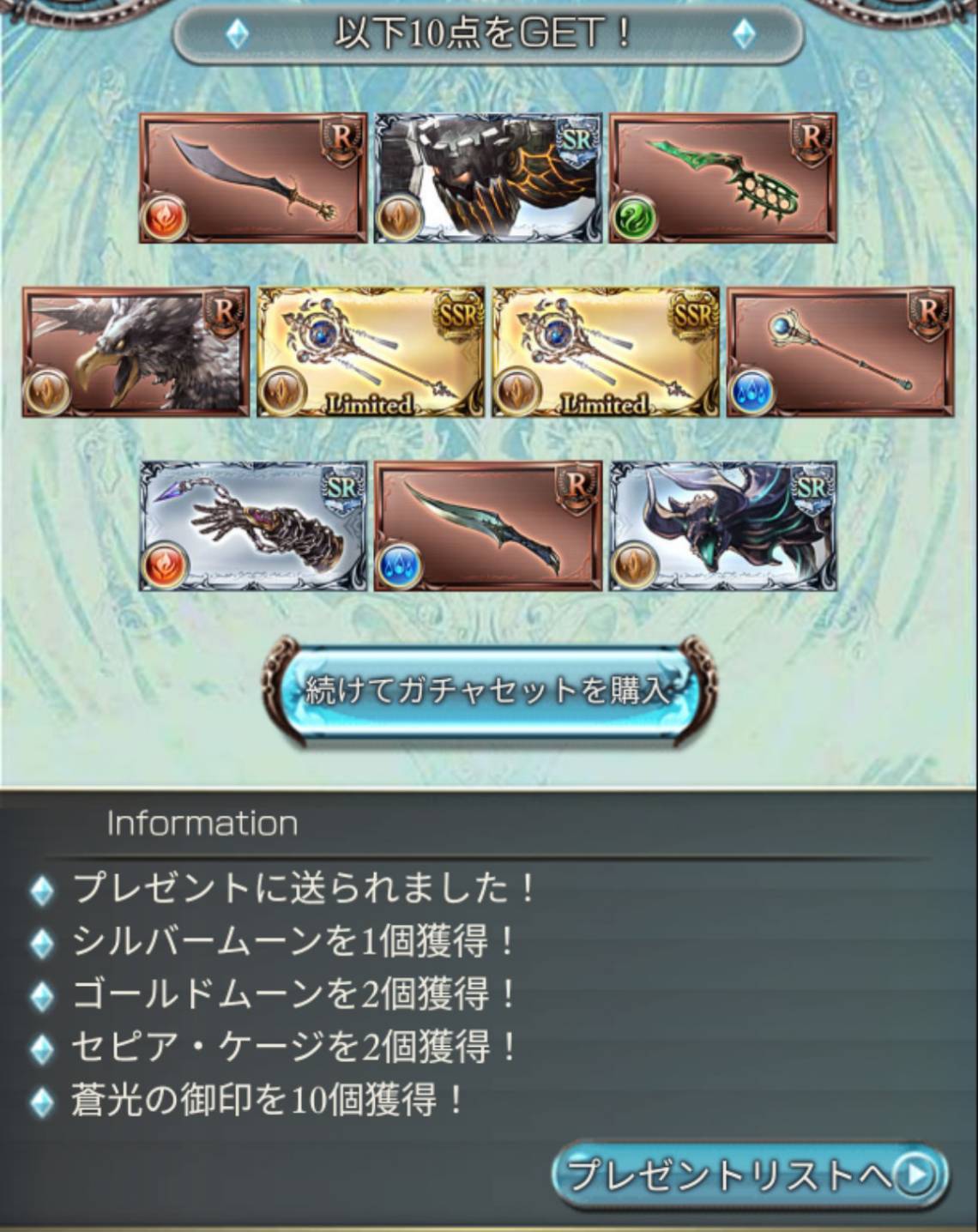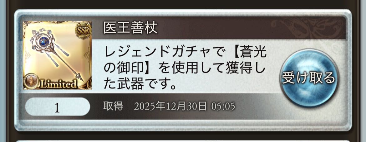 | … | 825/12/30(火)02:55:34No.1387612993+一枚引けたからリミ武器二本目を狙うか悩む… |