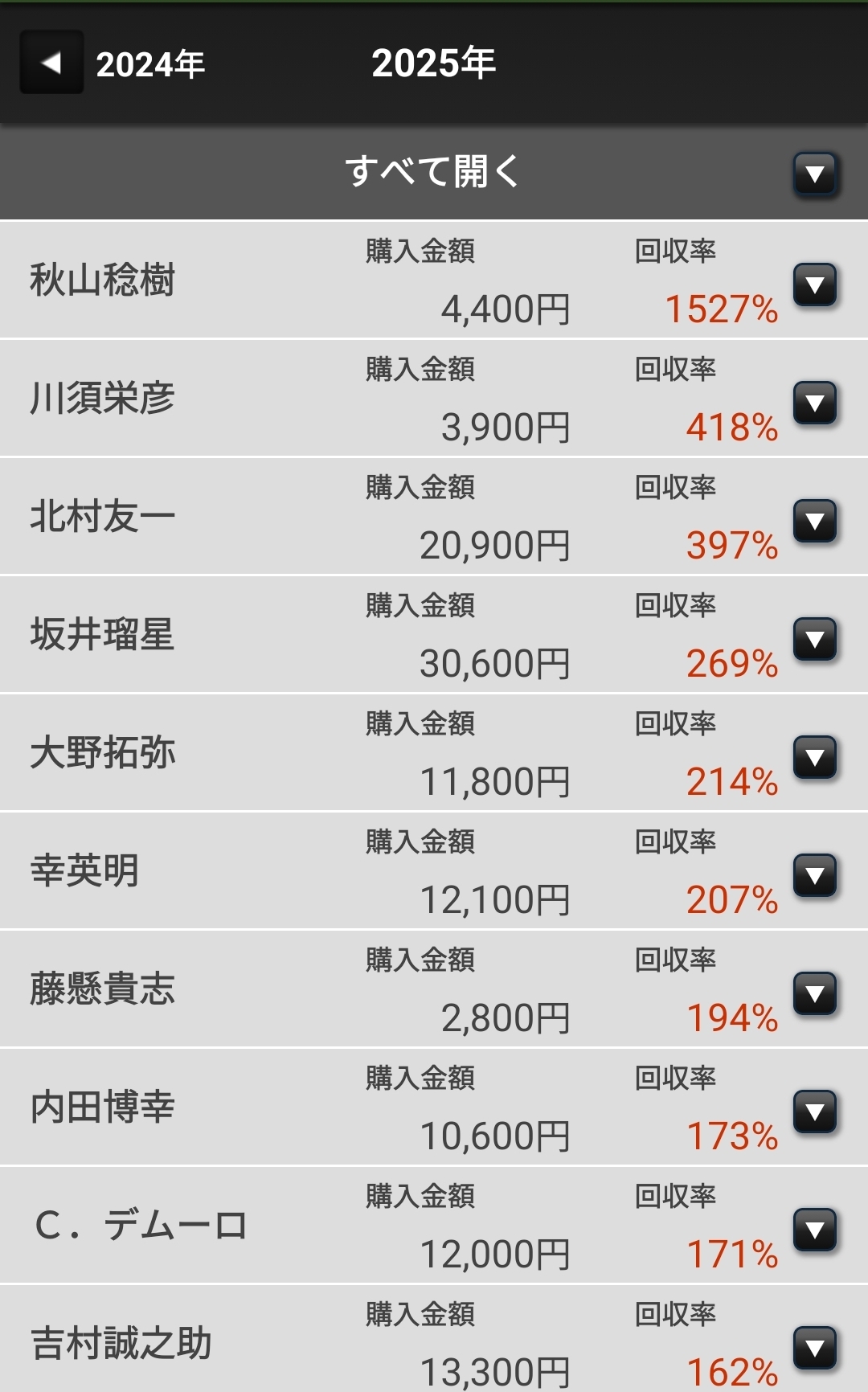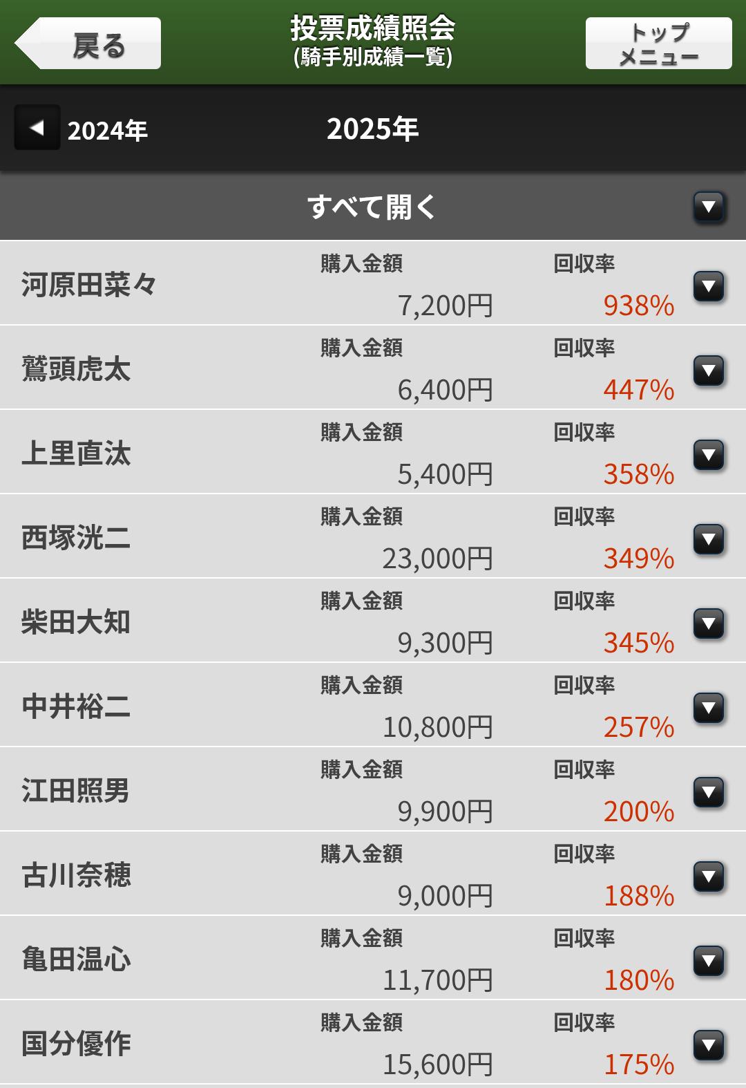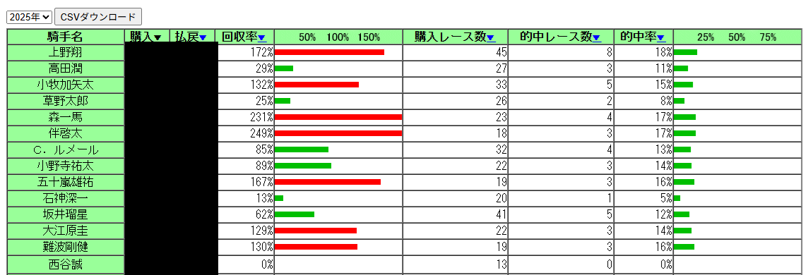 | … | 4925/12/30(火)07:11:22 ID:8eSoqfG2No.1387629809+今年の投票成績の騎手別成績眺めてるんですが |