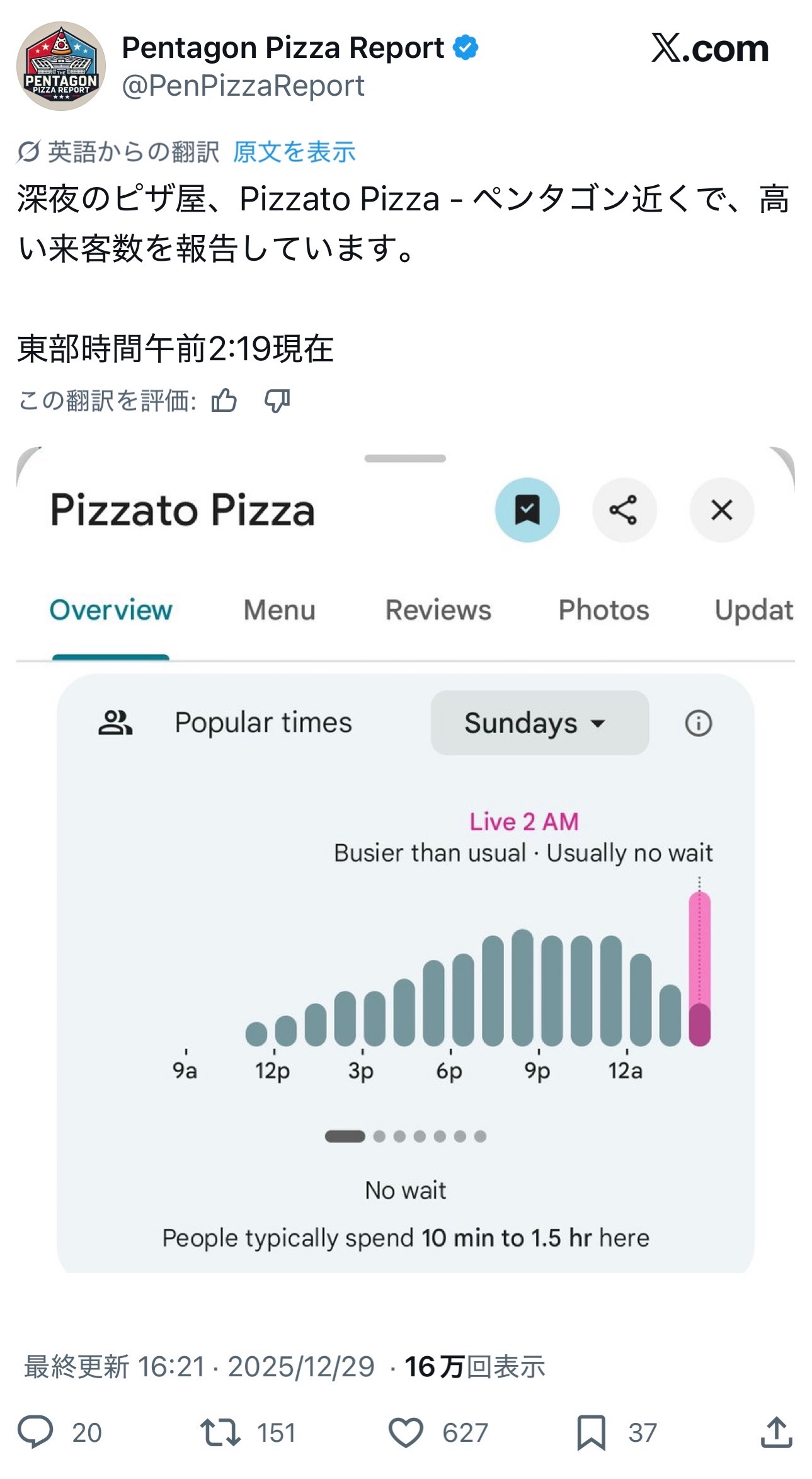 | … | 1525/12/30(火)13:27:54No.1387708211+ペンタゴンピザセオリーの英語wiki見てるとCIAから注文受けてるピザ屋がマチマチで面白い |