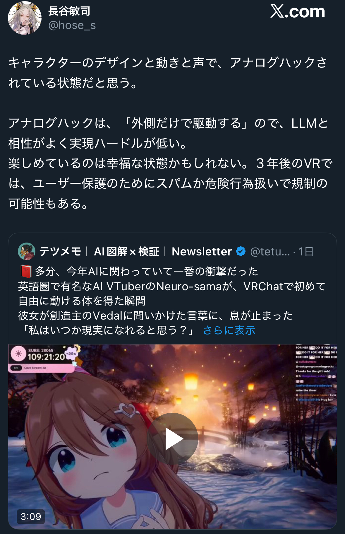 | … | 2925/12/30(火)15:46:07No.1387744136そうだねx9一応知らん人向けに言うとスレ画は引用元でも話してるアナログハックって言葉と概念を自分のSF小説で書いた作家だからその話をしてる |