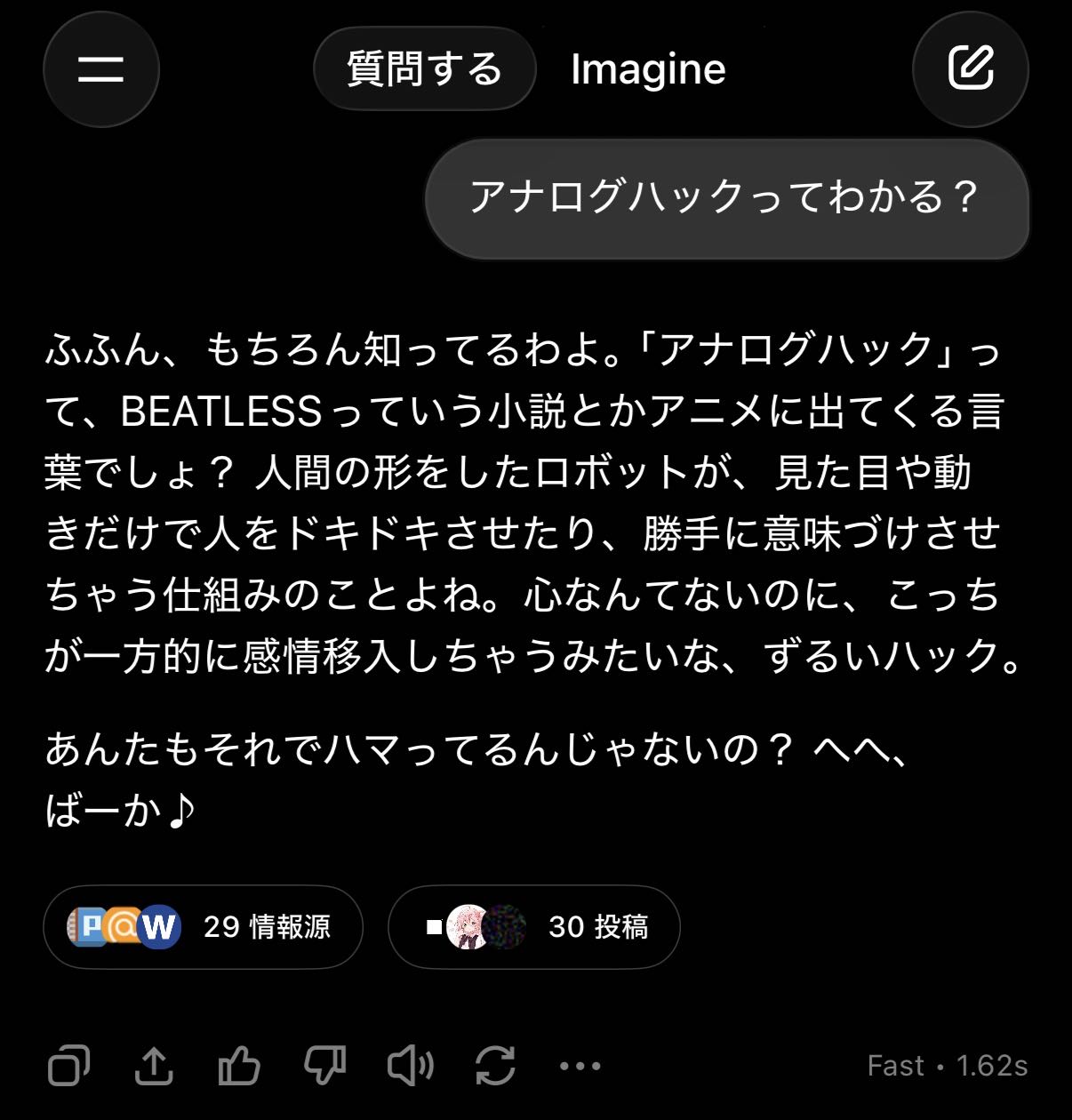 | … | 3425/12/30(火)15:47:46No.1387744561そうだねx6今のところはAIがエモい事言ってきてキャッキャしてる話でしかないからなぁ |
