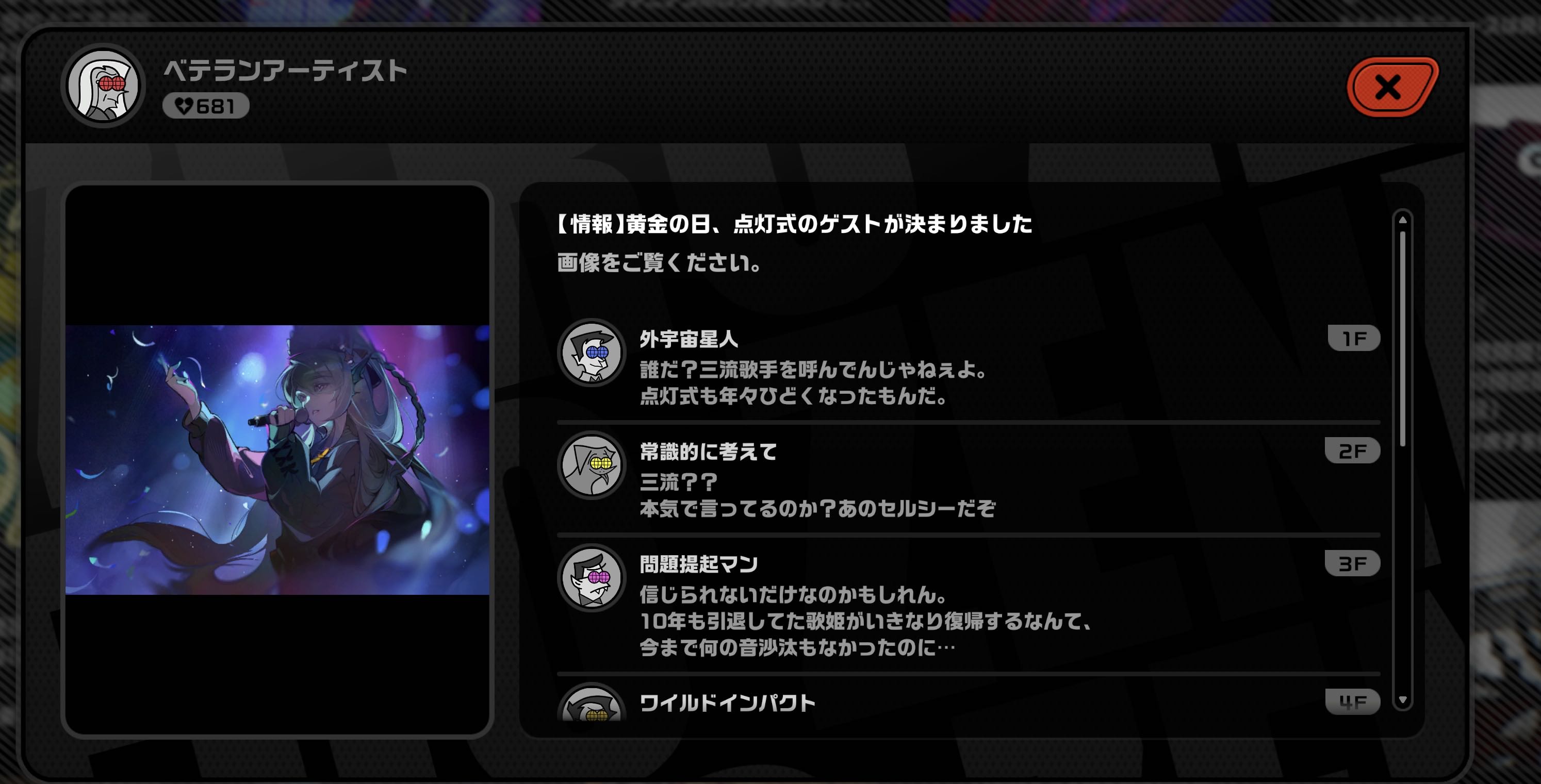 | … | 34725/12/30(火)20:30:41 ID:D7K4P5z.No.1387832509そうだねx1>今回めっちゃストーリー長いンナ 11時からやってるのに休み休みやってるからまだ終わらないンナ… |