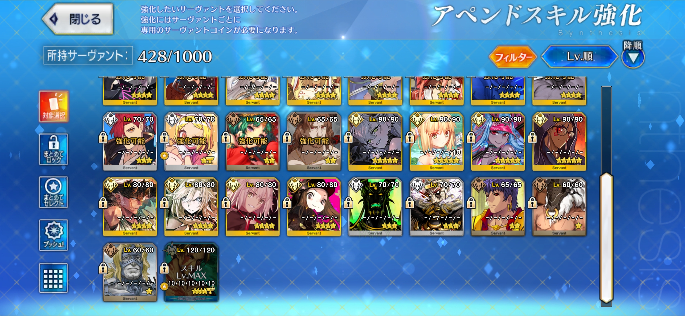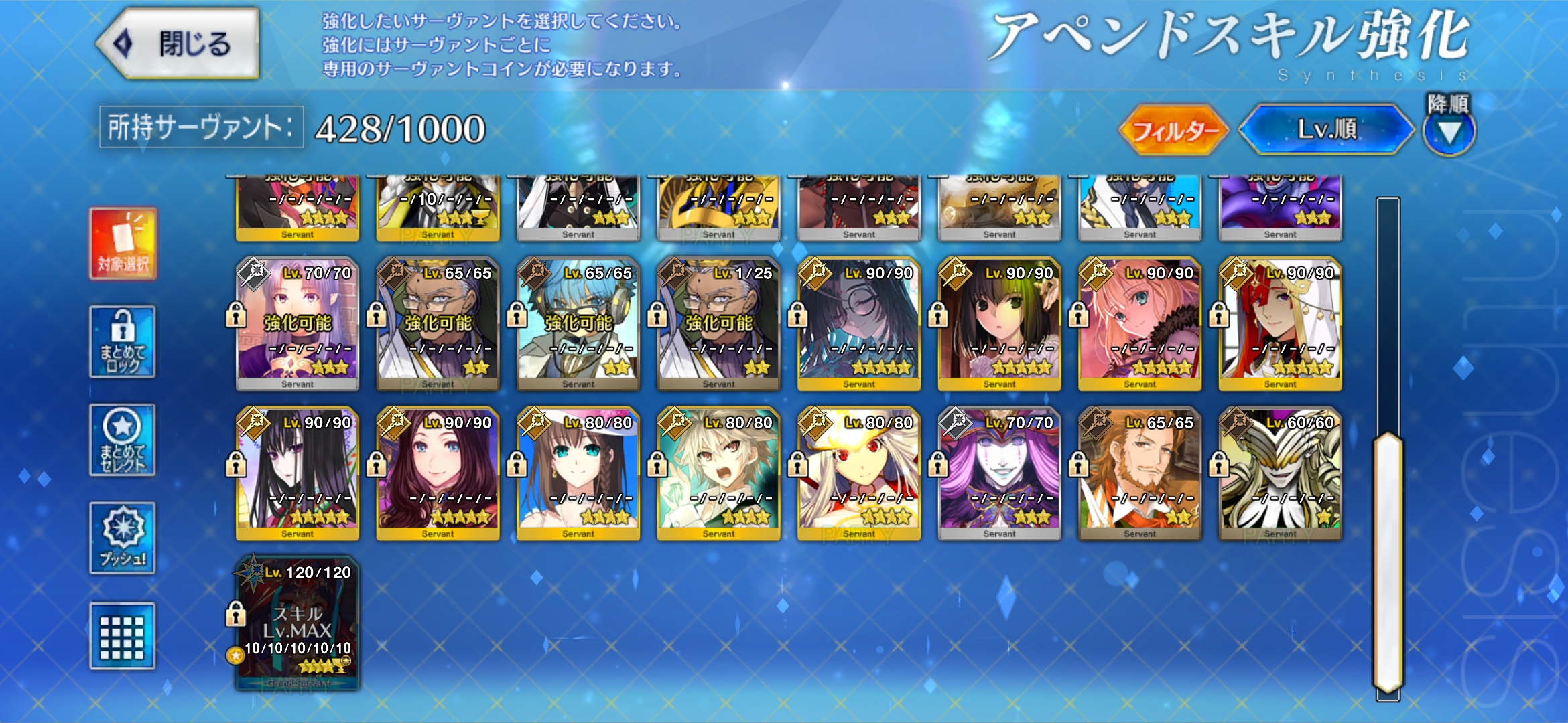 | … | 7925/12/30(火)21:51:07 ID:bTMdkf/sNo.1387862696そうだねx1>>レベル120アペンド全部開けようとすると宝具6必要になるのでそれが120 |