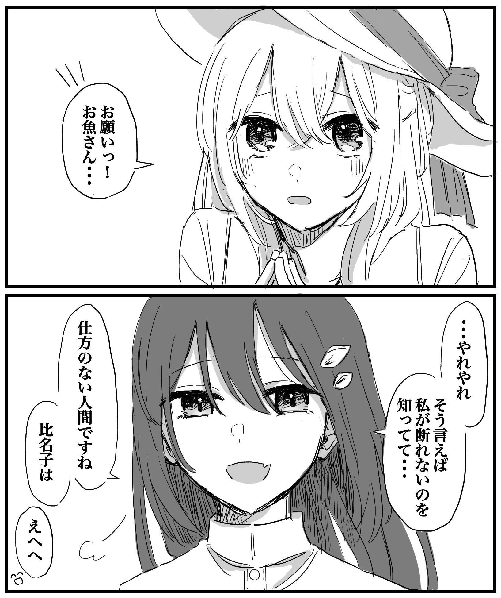 | … | 20725/12/31(水)00:25:22No.1387916746そうだねx2>🐟比名子を喰べるとかムリムリ |