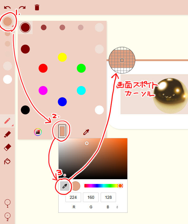 | … | 5625/12/31(水)01:19:57No.1387932448+>はっちゃんに画面スポイトあるから色選び身につくまでは存分に使うべきよ そういうのあったのか… |