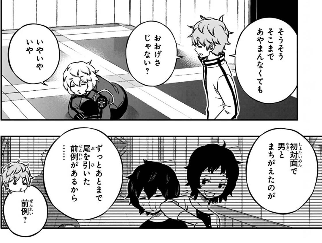 | … | 7825/12/31(水)11:53:19No.1388014924+>ワートリ世界は若い男女が密集しているのに色恋沙汰がほぼないよね |