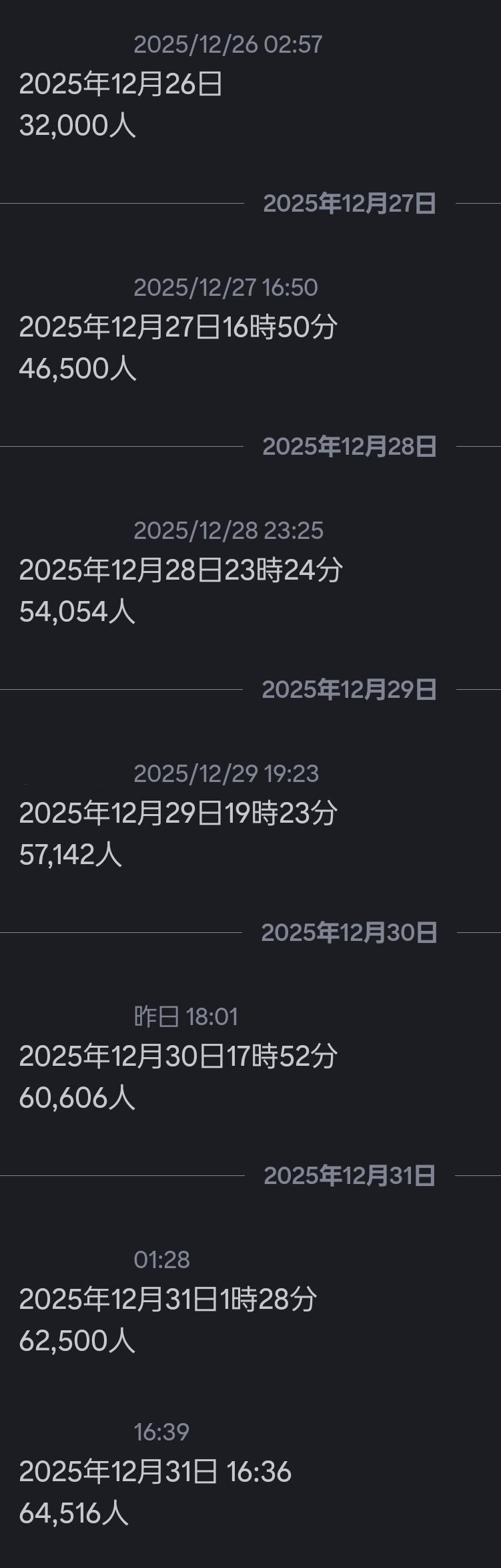 | … | 38525/12/31(水)17:26:12 ID:0RqmuQj6No.1388105370+事前登録100万なのにアクティブ65000にゃん? |