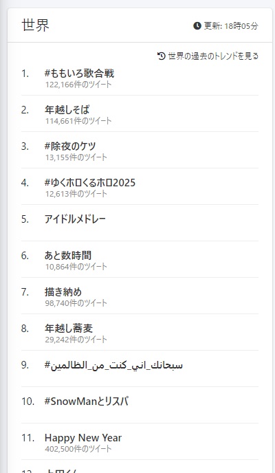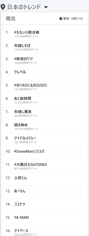 >大晦日のトレンドに入るのに後追いが現れない不思議な企画