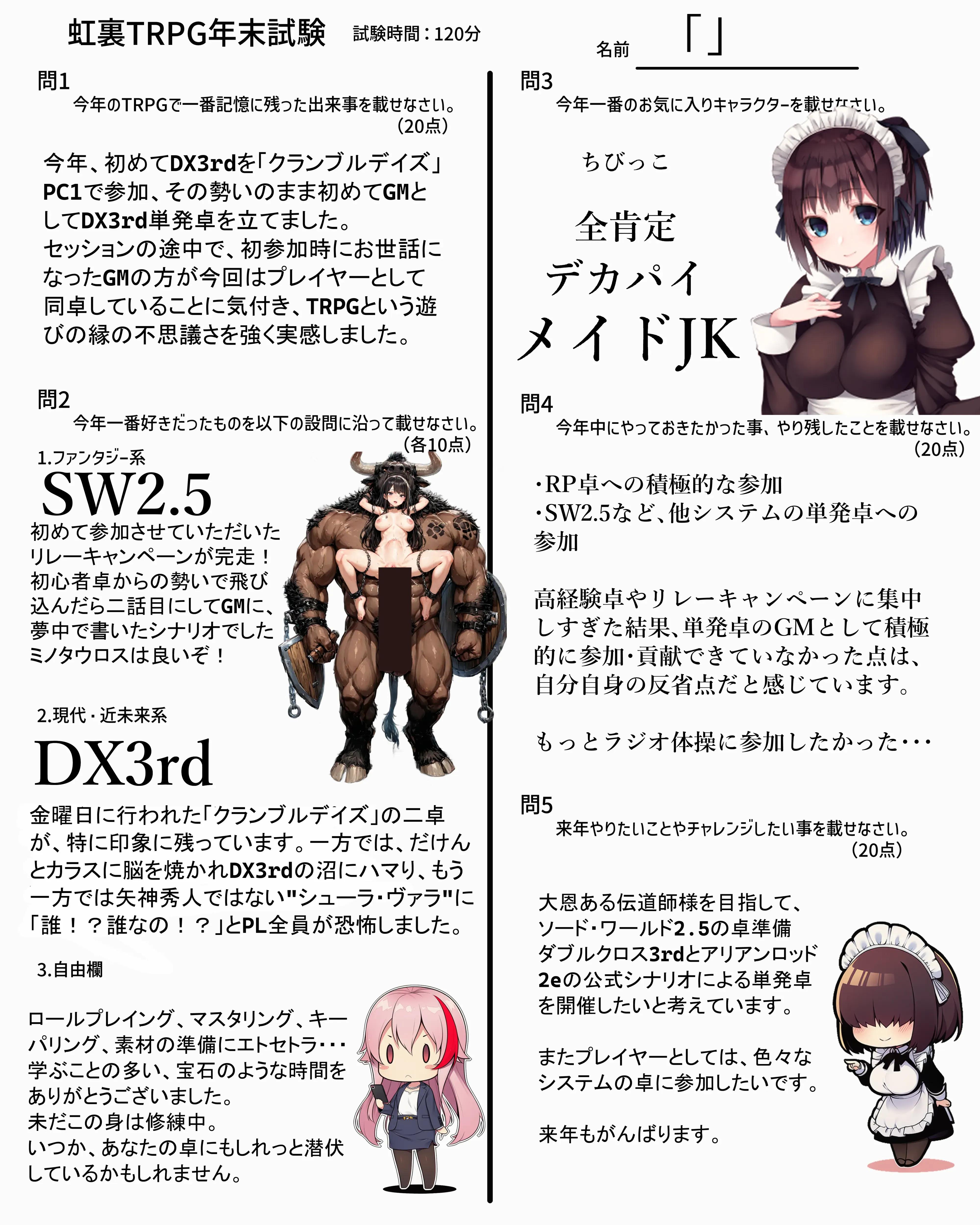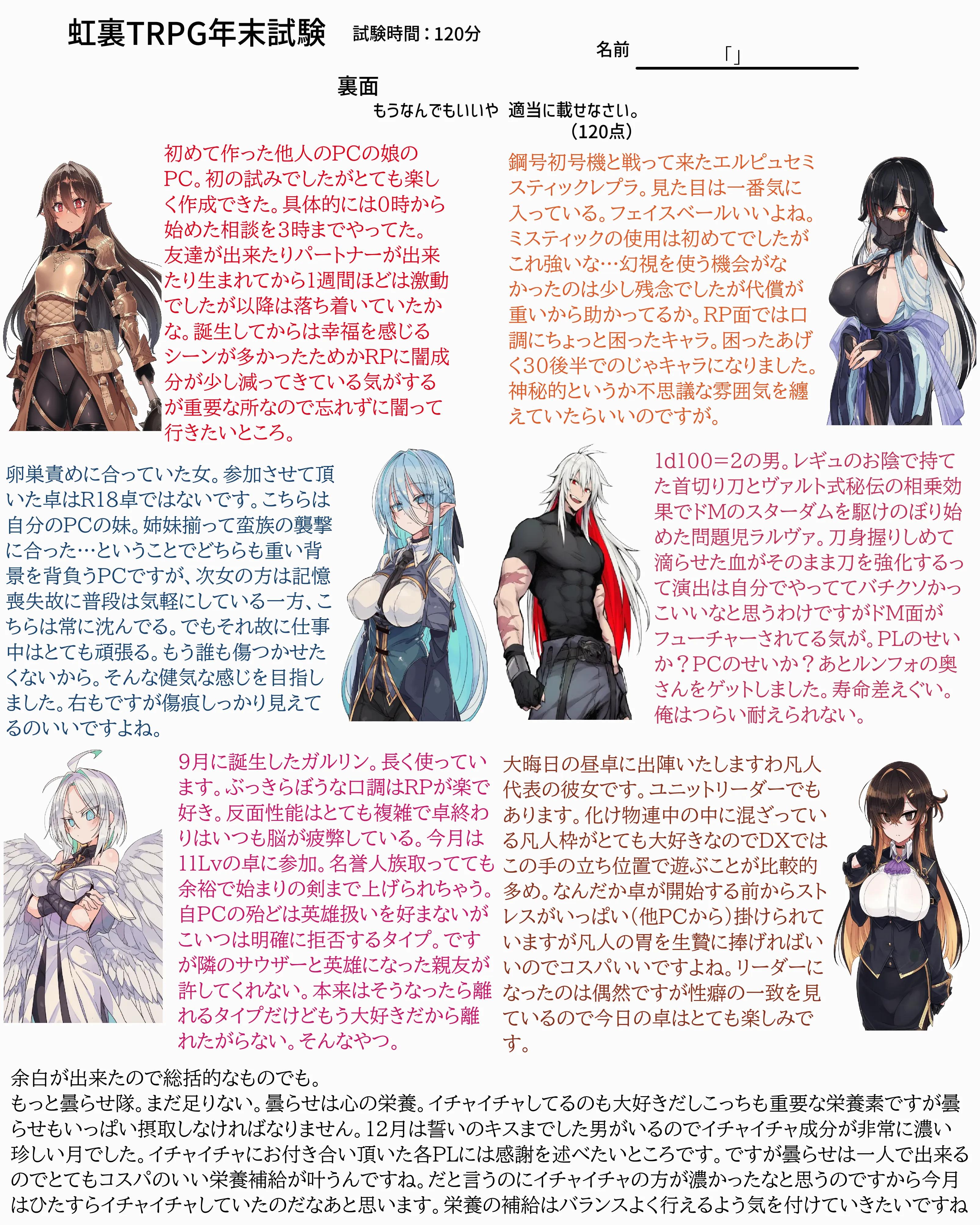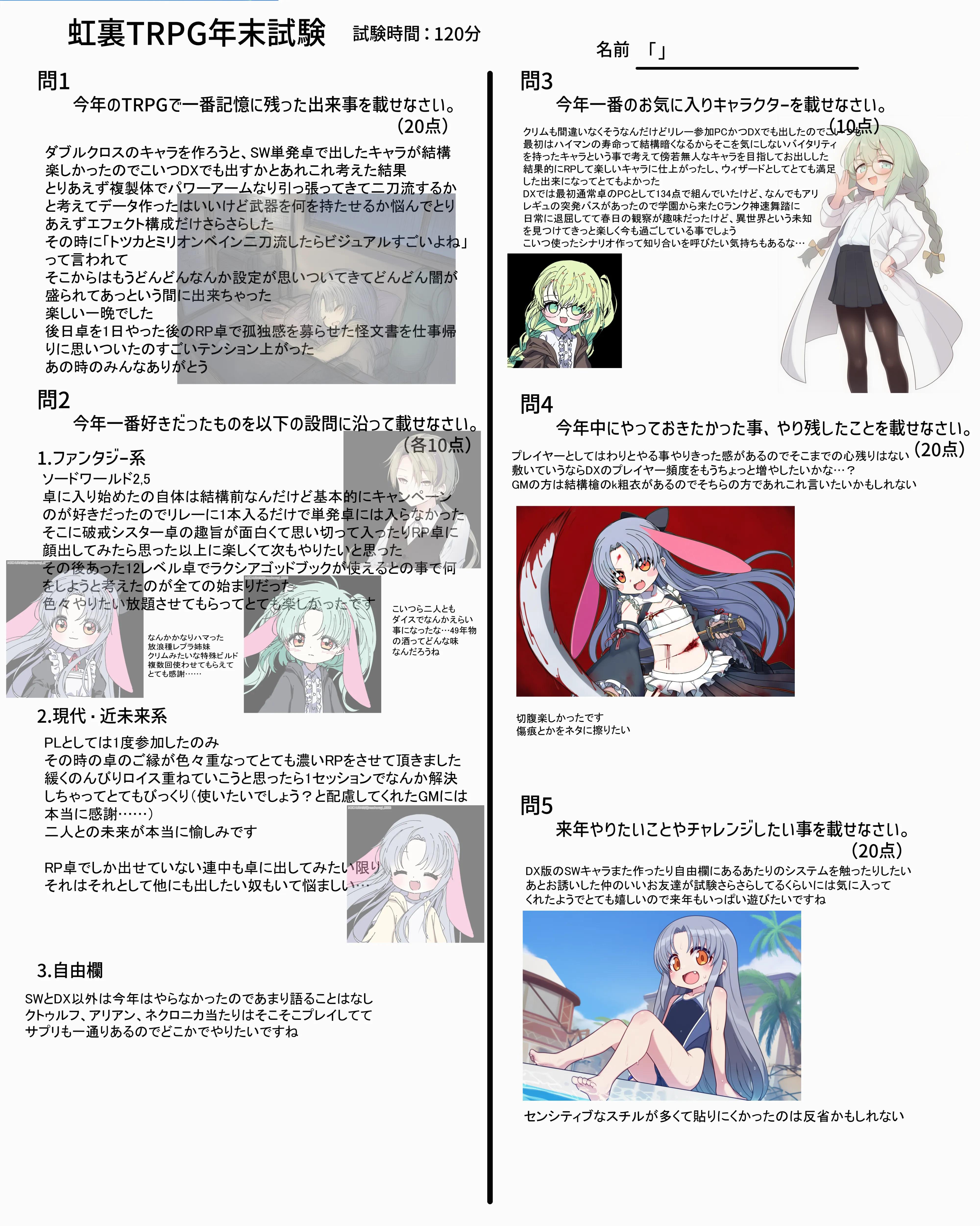 | … | 7725/12/31(水)18:55:55No.1388133350そうだねx6なんか家に帰れたので回答用紙とおえかきまとめ再掲します |