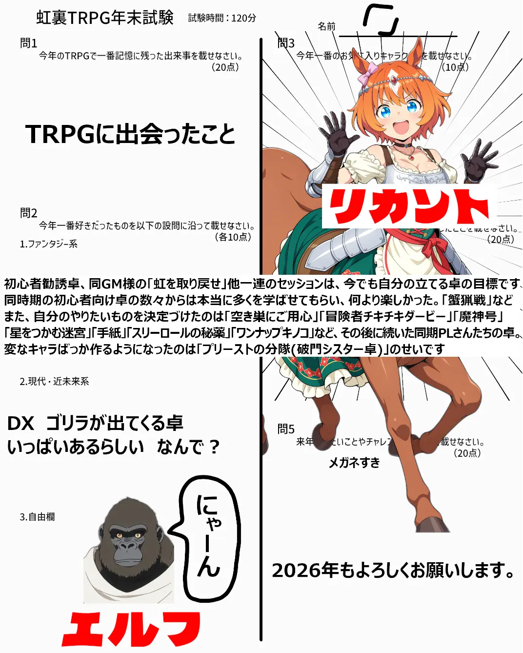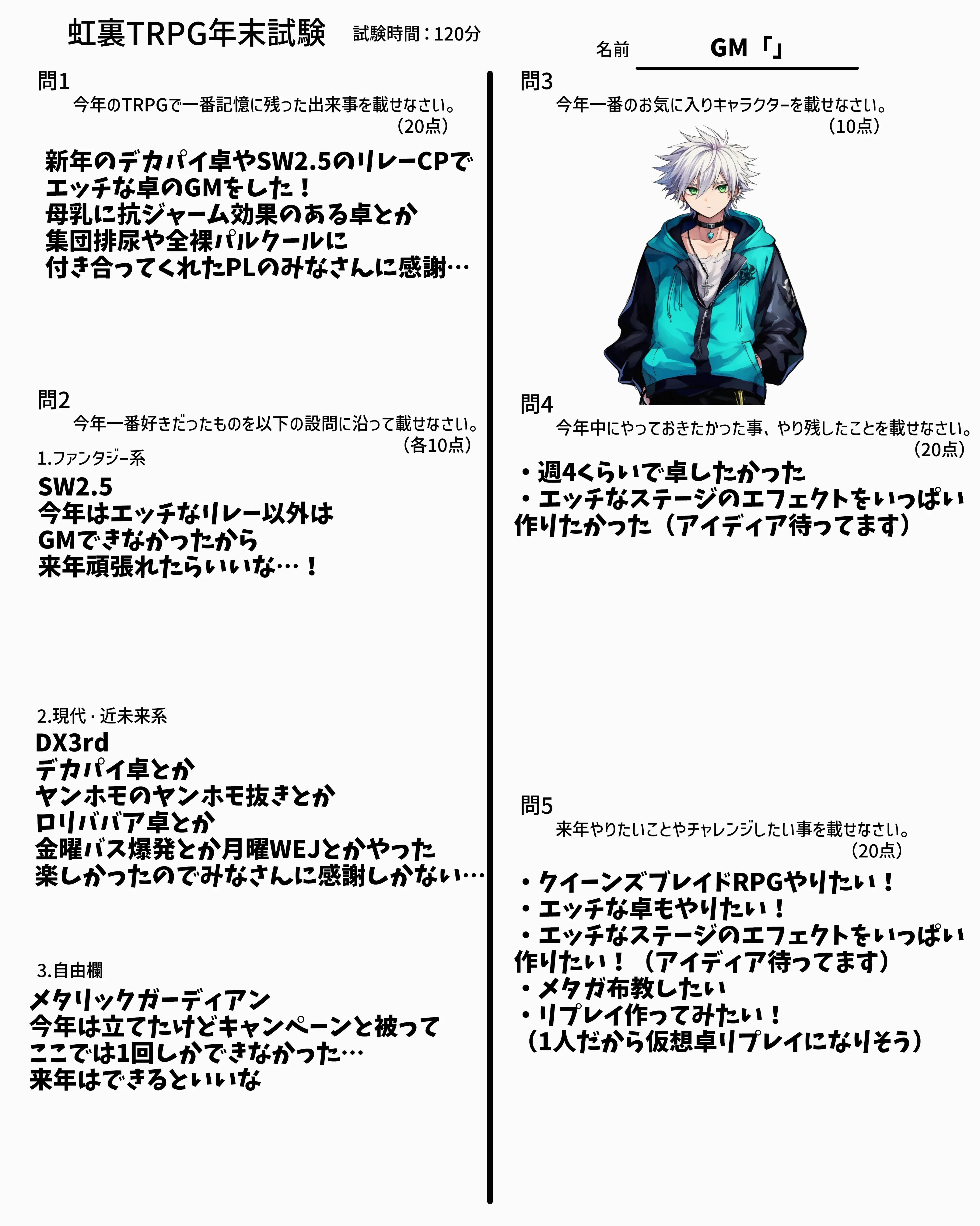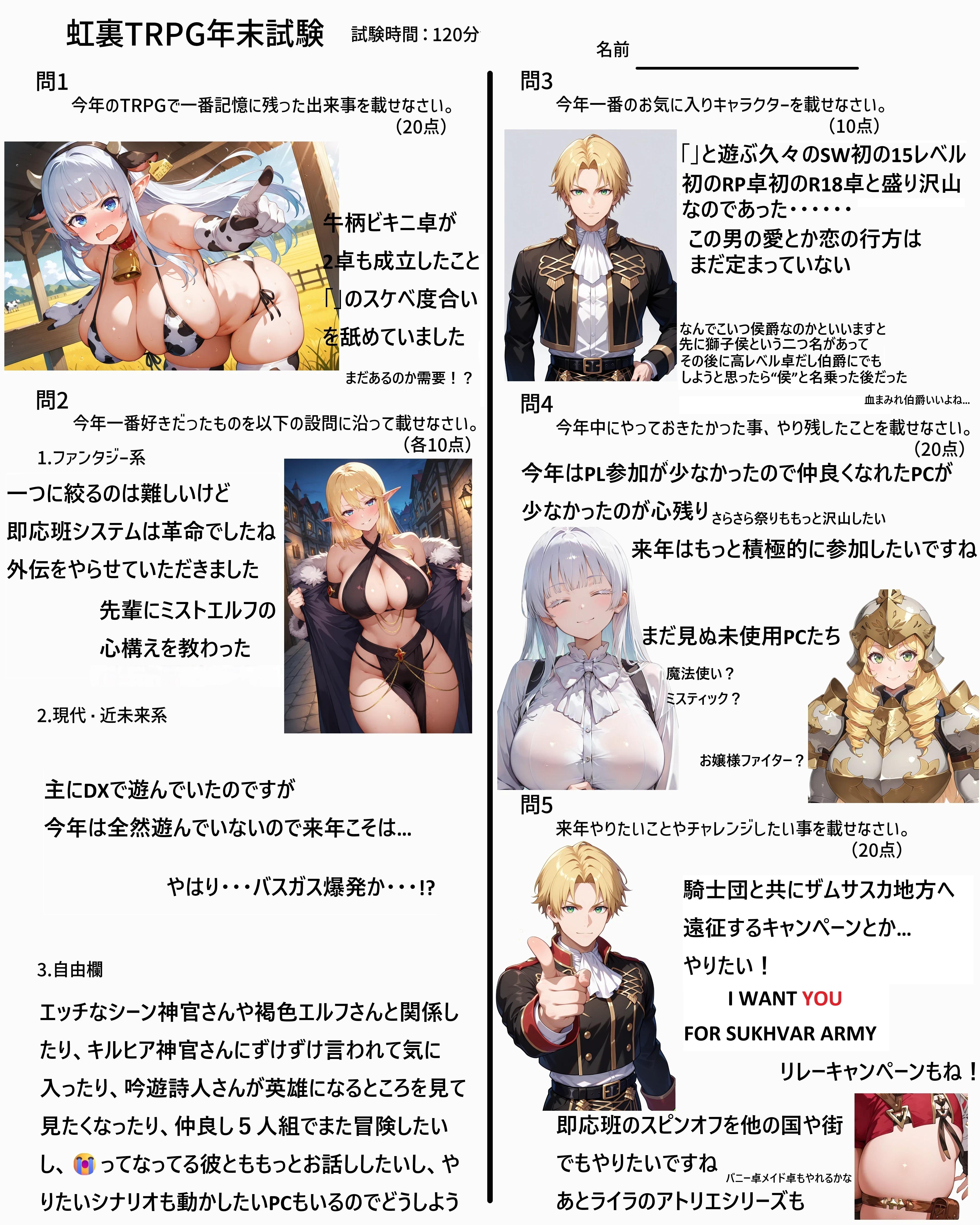 | … | 7725/12/31(水)18:55:55No.1388133350そうだねx6なんか家に帰れたので回答用紙とおえかきまとめ再掲します |