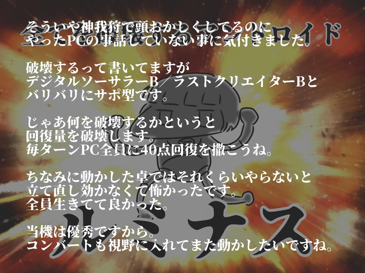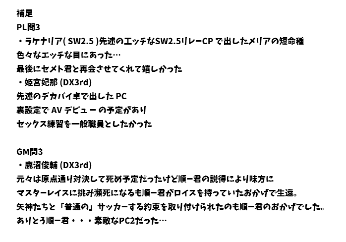 | … | 12125/12/31(水)19:22:53No.1388141972そうだねx5GM編とPL編と手持ちPCさらさら |