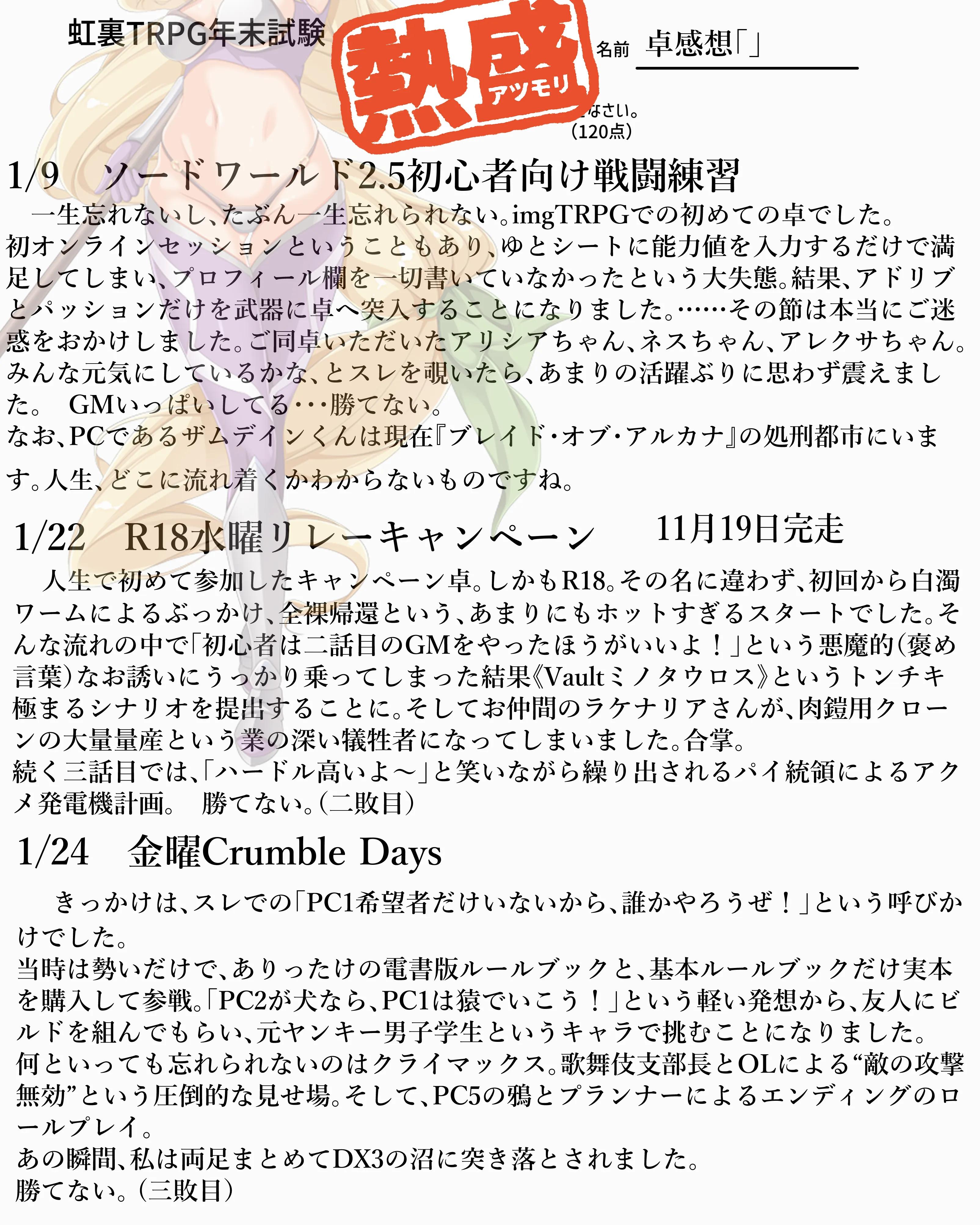 | … | 4825/12/31(水)18:42:07No.1388129099そうだねx3>一部再掲になりますが答案用紙を提出させていただきます |
