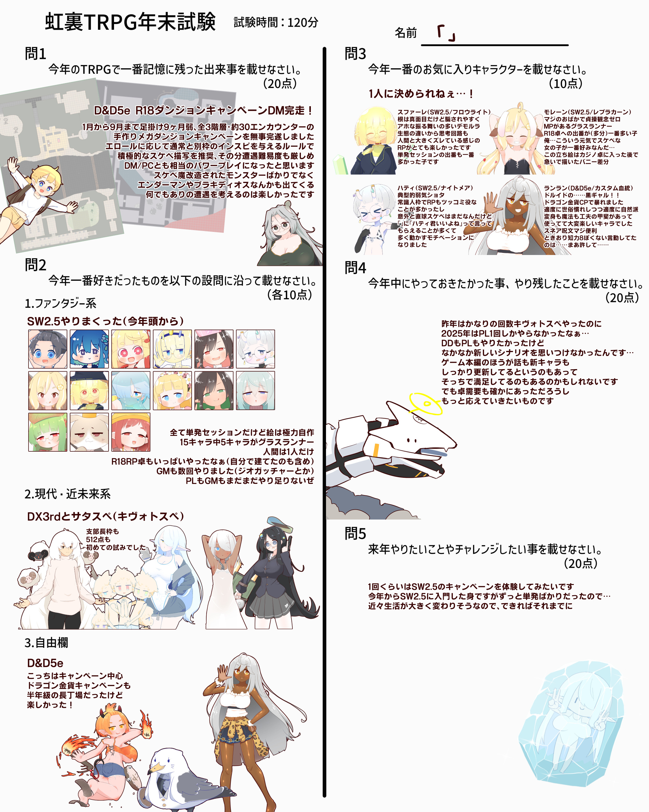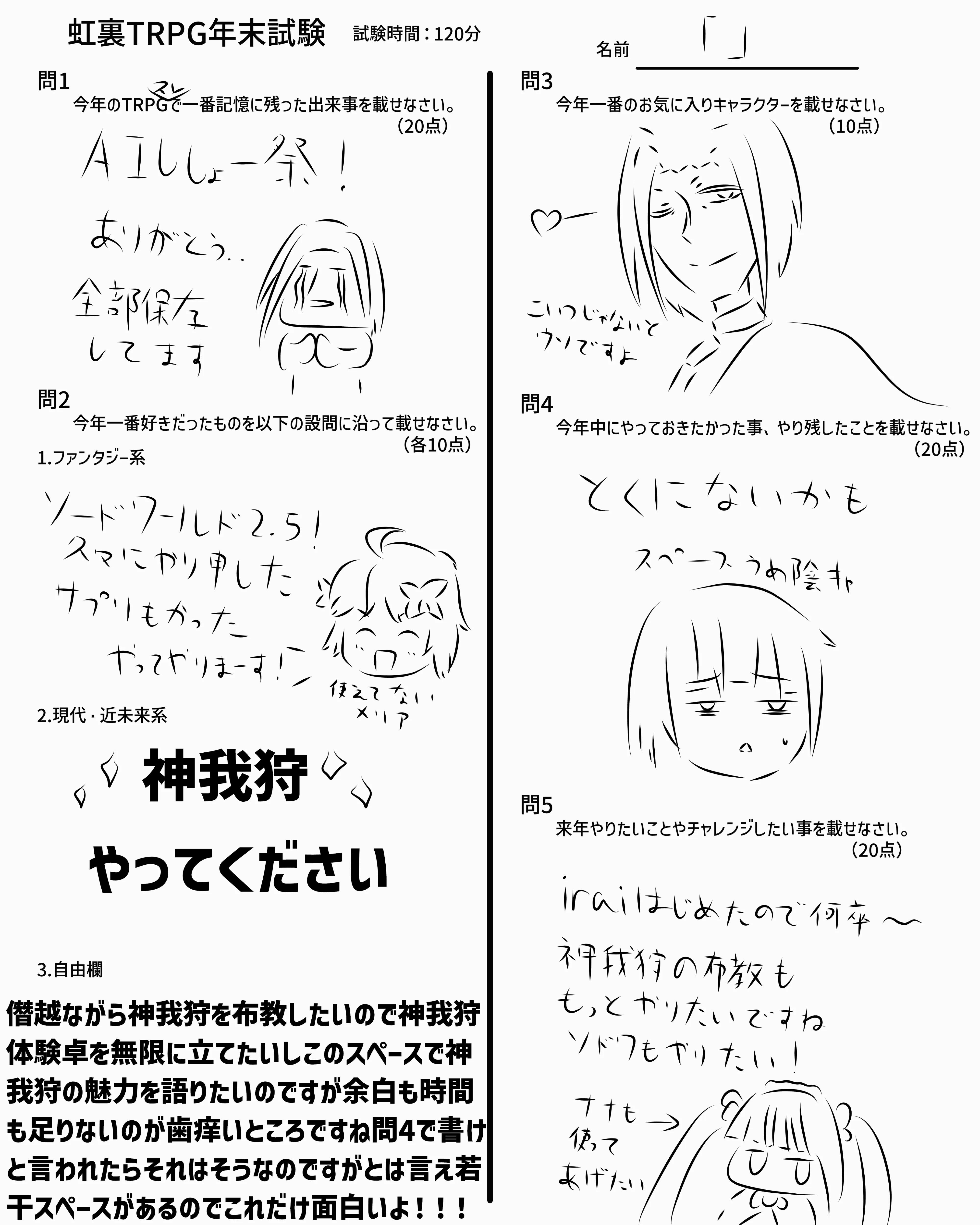 | … | 12525/12/31(水)19:25:37No.1388142989そうだねx4>なんか家に帰れたので回答用紙とおえかきまとめ再掲します |