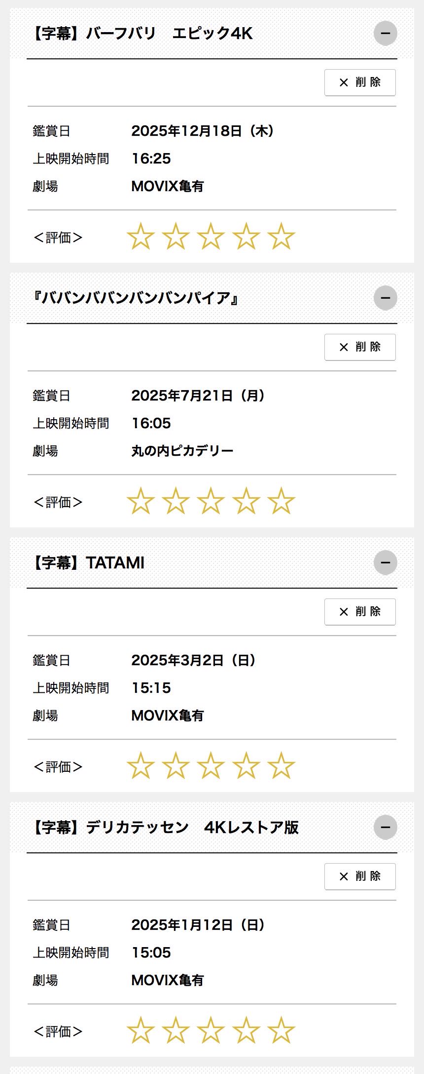 | … | 27025/12/31(水)19:40:31No.1388149176+一般的には映画館で映画見るのは年一本くらいらしいけど今年は結構映画館行く人多かったんじゃないだろうか |