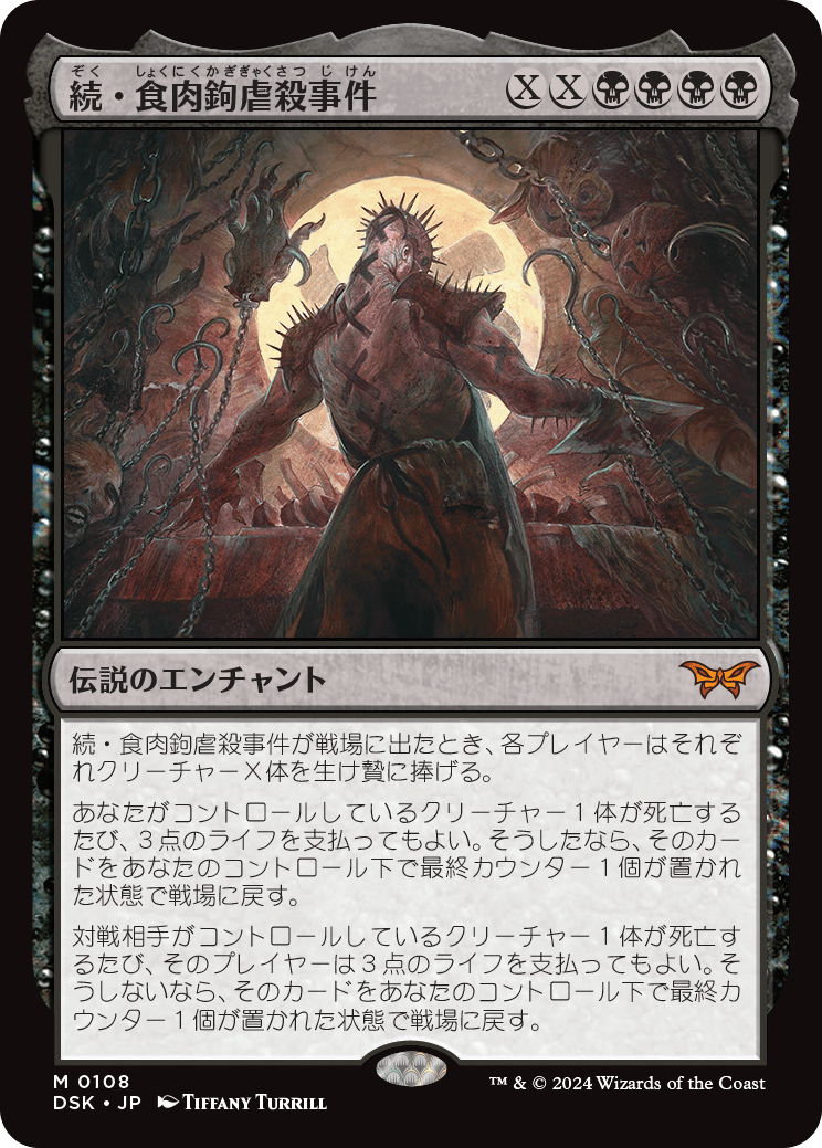 | … | 6425/12/31(水)21:39:13No.1388201027そうだねx1食肉鉤殺人事件ザ・ファイナルが戦場に出た時、X人のプレイヤーを生け贄に捧げる。 |