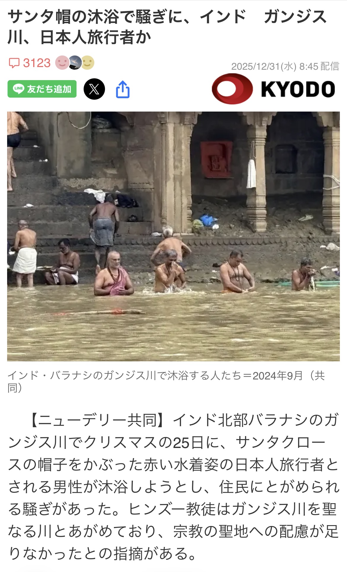 | … | 1026/01/01(木)23:20:44No.1388617901+これサンタ帽被ってたやつがガンジスでおしっこしたからだろ |