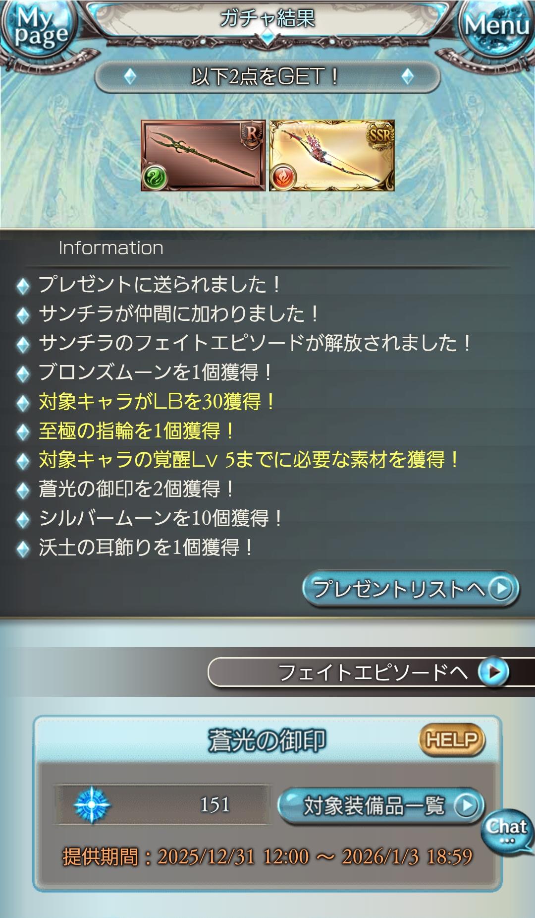 | … | 6126/01/02(金)05:15:56No.1388672168+30連白騎士 昨日天井でサンチラ取ってたから本当にありがたい… |