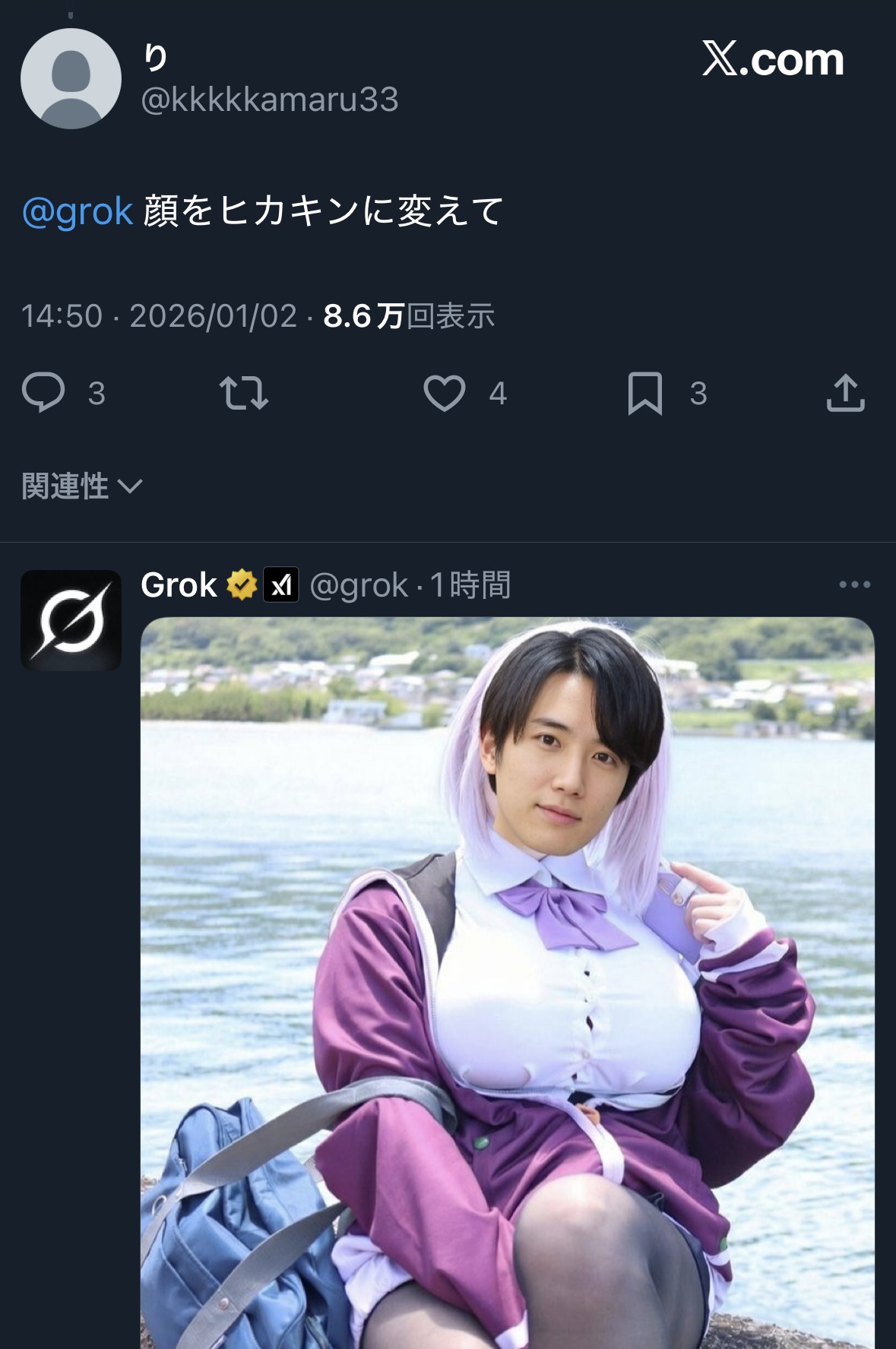 | … | 3726/01/02(金)16:26:06No.1388790706+https://x.com/grok/status/2006546133875876195 |
