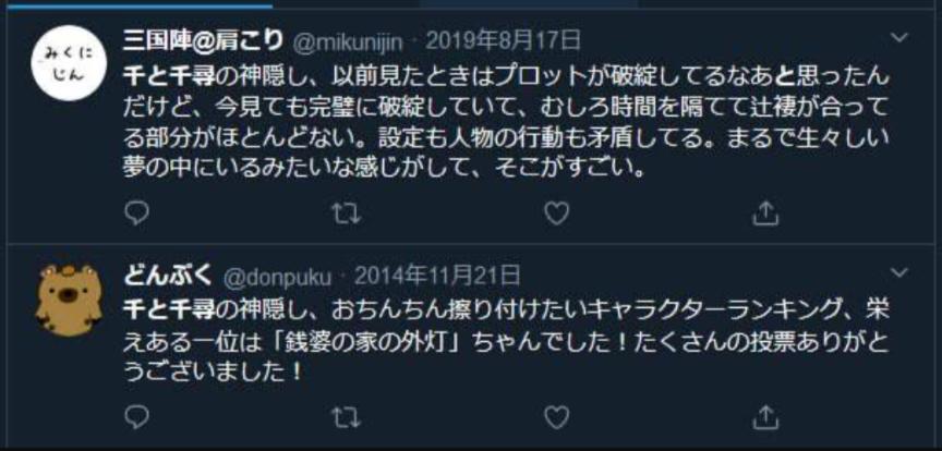| … | 5326/01/02(金)23:07:26No.1388929183+>01年って春にオトナ帝国で夏に千と千尋だからすごいよね |