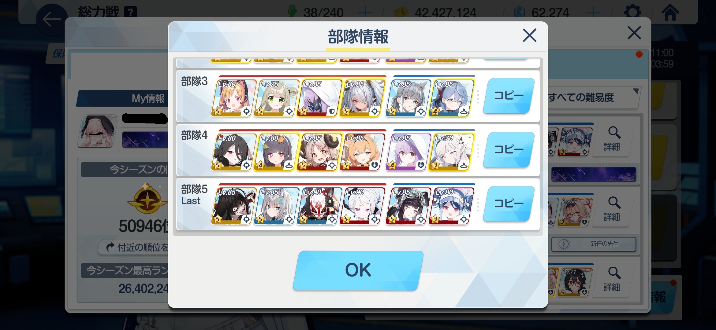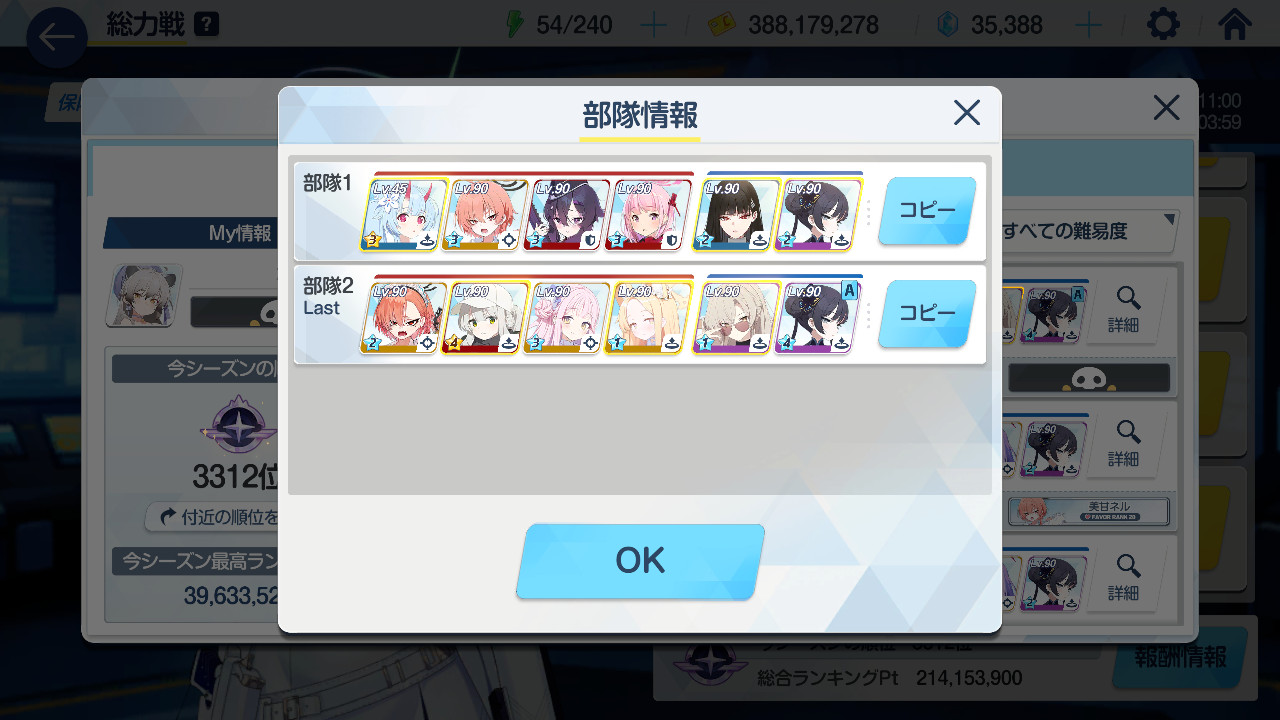 | … | 5926/01/03(土)00:43:24No.1388962378+生徒増えたから詰めれば楽なんだろうなと思いつつ詰めるのめんどくさいから昔の順番にスキル使えばそれで済む編成使ってる |