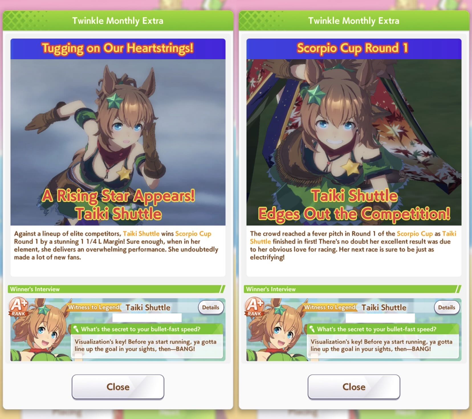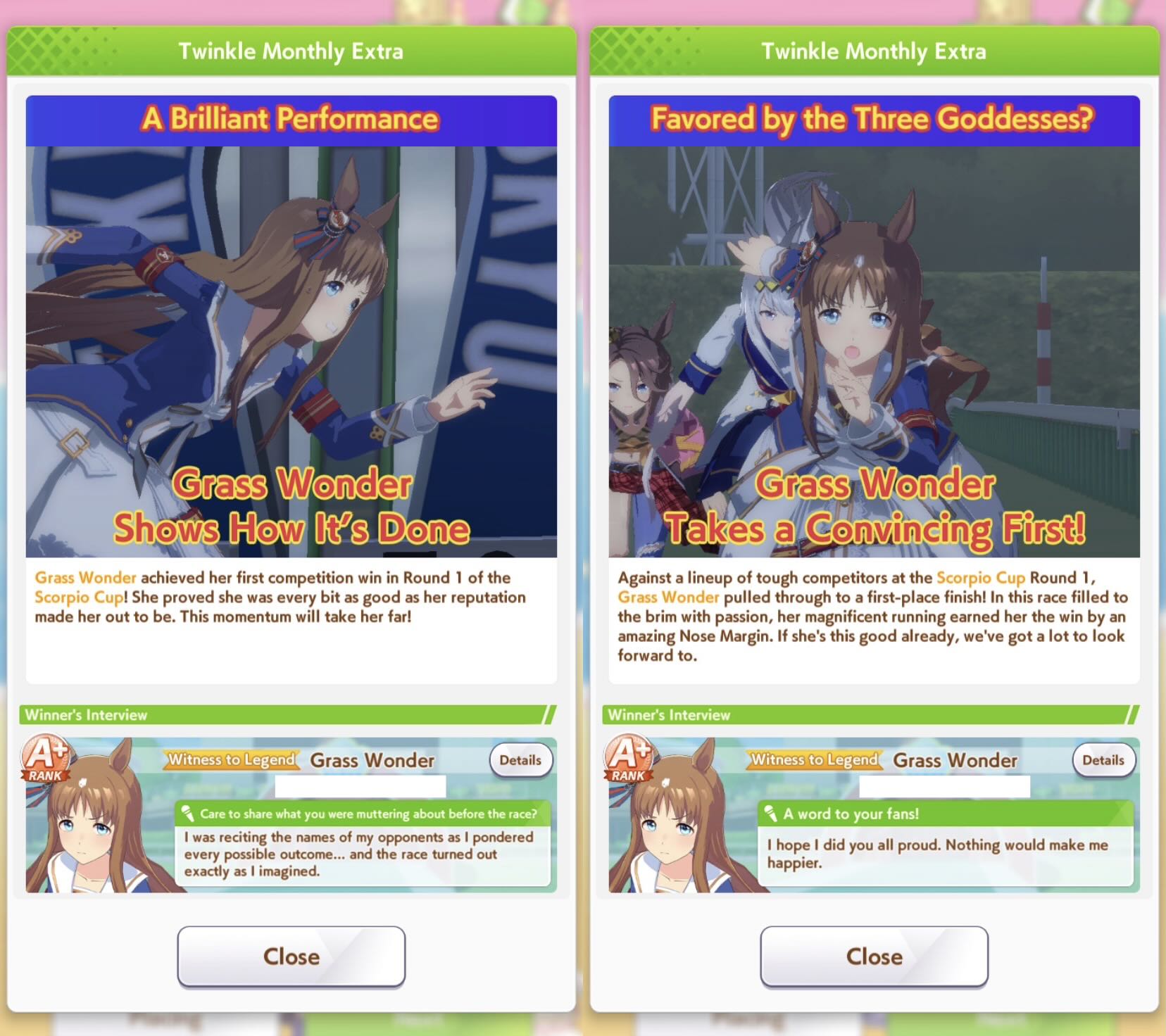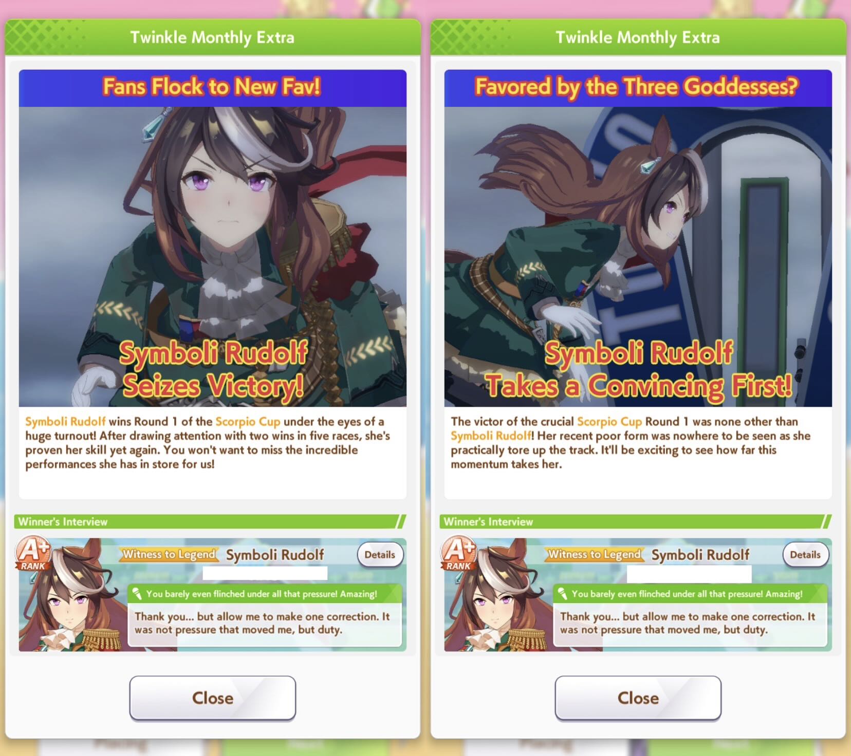 | … | 6926/01/03(土)07:38:33 ID:ZA5CPN56No.1389002835そうだねx1イベスト見終わりました三忍の先輩方の関係性が見れましたが特にフェローさんは引けていないとどういう子か分かりにくいと思うので描写が増えて良かったです イクノさんは後半は地味目でしたが旅行の計画の際はバッチリすぎるマネジメントでファインさんは青春を感じさせながらもちょっと寂しく感じてしまうやつでした…育成時のグッドエンドを知っていると史実寄りのほうで進んでいるとなんとも言えない気持ちになります |