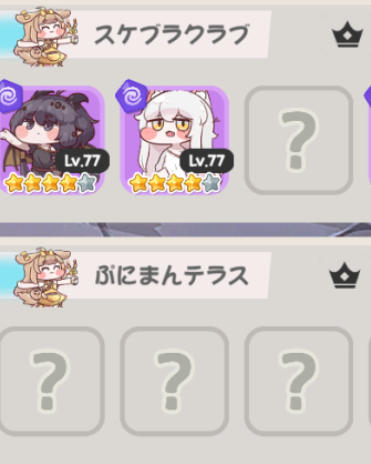 | … | 52626/01/03(土)10:51:08 ID:8m/sRwb6No.1389033768+>「」ミーはもちもちしたくて始めたからキャラ収集と宴会場でだけ悪鬼になるつもりにゃん |