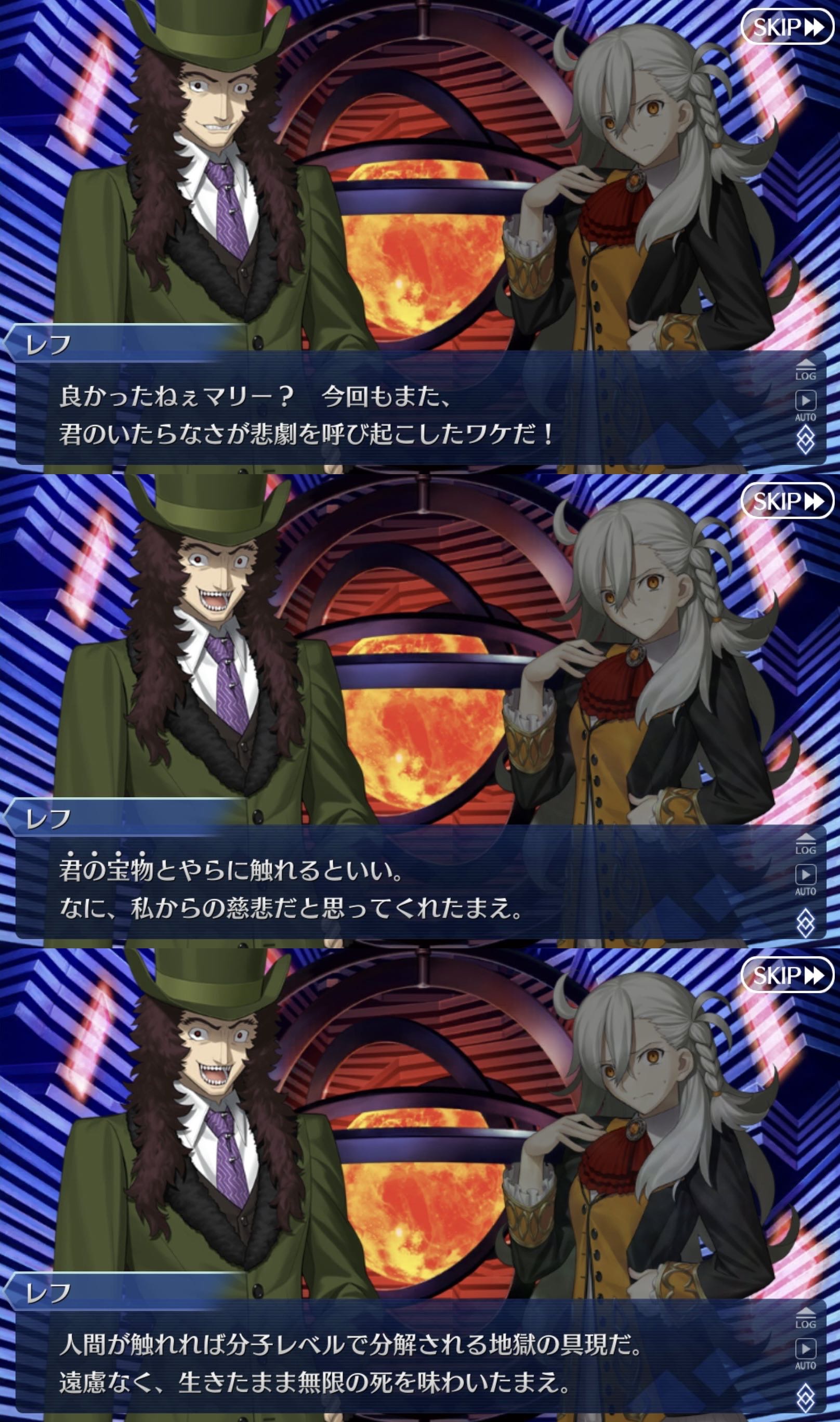| … | 32426/01/03(土)13:00:41No.1389065655そうだねx1>今回のレフモンもあの頃は人間時代と魔神の憤りと失望が混ざってアニムスフィアとか人類への怒り全てをカルデア責任者の小娘にぶつけてしまった…的なこと言ってたしな |