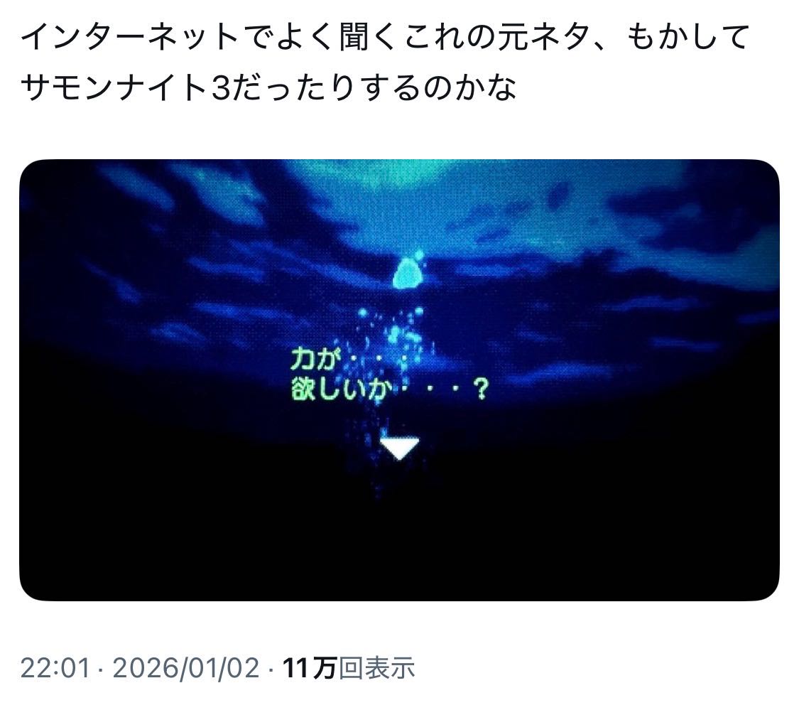 | … | 2626/01/03(土)12:40:45No.1389060277そうだねx15サモンナイトが初出だったとしてもミームにはならんな |