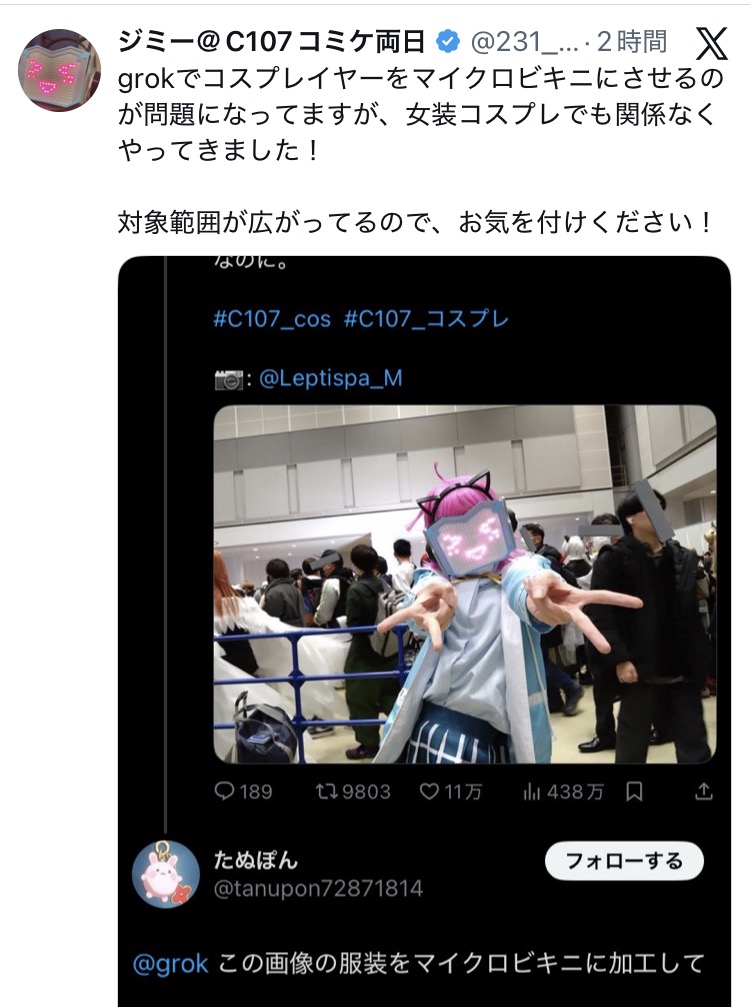 | … | 126/01/03(土)16:11:25No.1389113137そうだねx18女装コスプレとか死ぬほど気持ち悪いな |