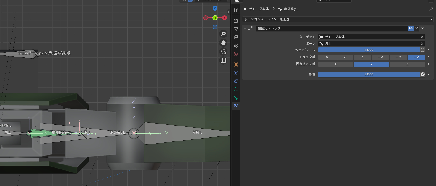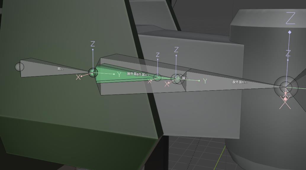 ガンプラみたいに胴体に対して1軸のみで回転して二の腕に追従する肩アーマーを作ろうとして符号反転するところから進まねぇ