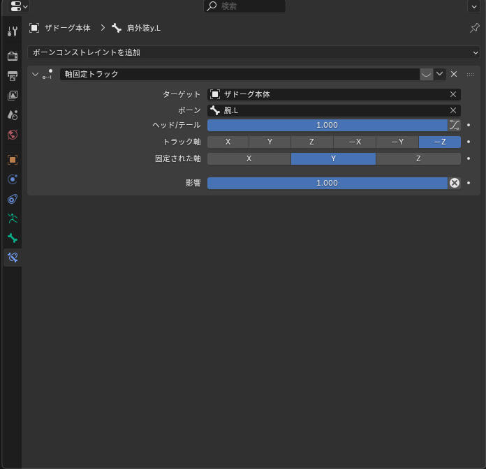 | … | 1026/01/03(土)20:16:24No.1389186399そうだねx2この動きを実現させるのはボーンコンストレイントを使います |