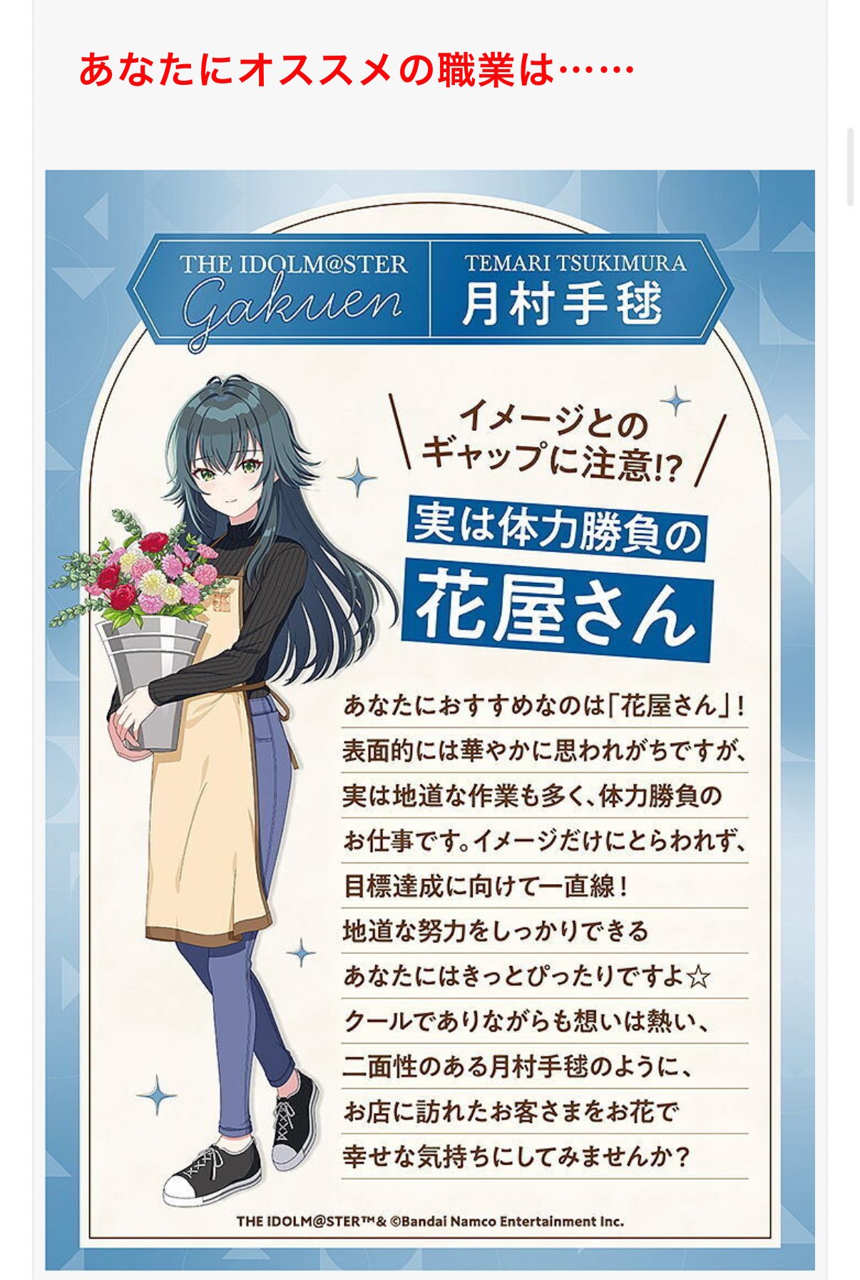 | … | 426/01/03(土)20:47:56No.1389197388+ふふ、手毬は花屋さんが似合うね |