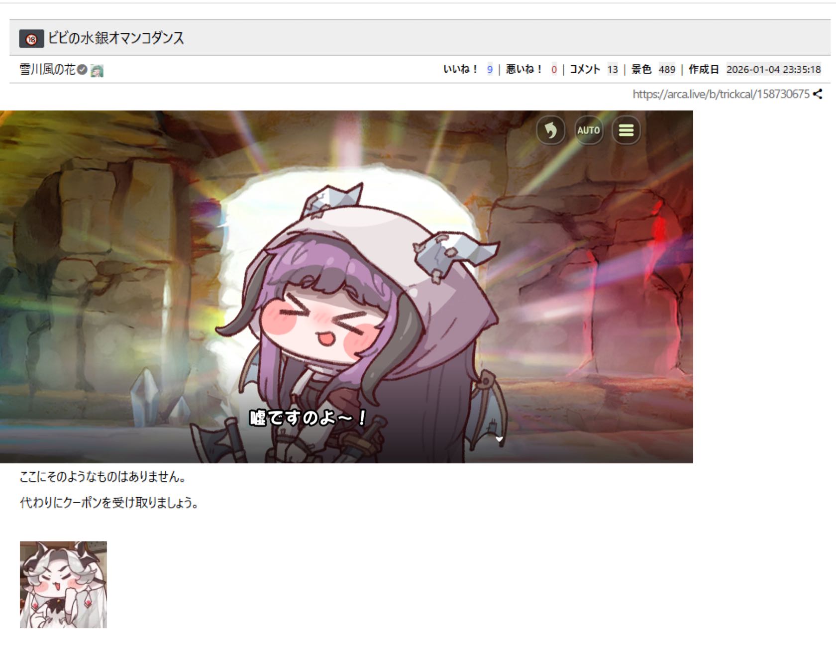 | … | 4226/01/05(月)01:47:27 ID:LjOaK/g.No.1389625776+今日から仕事だから寝る前にエピカのイベスト見てるにゃん |