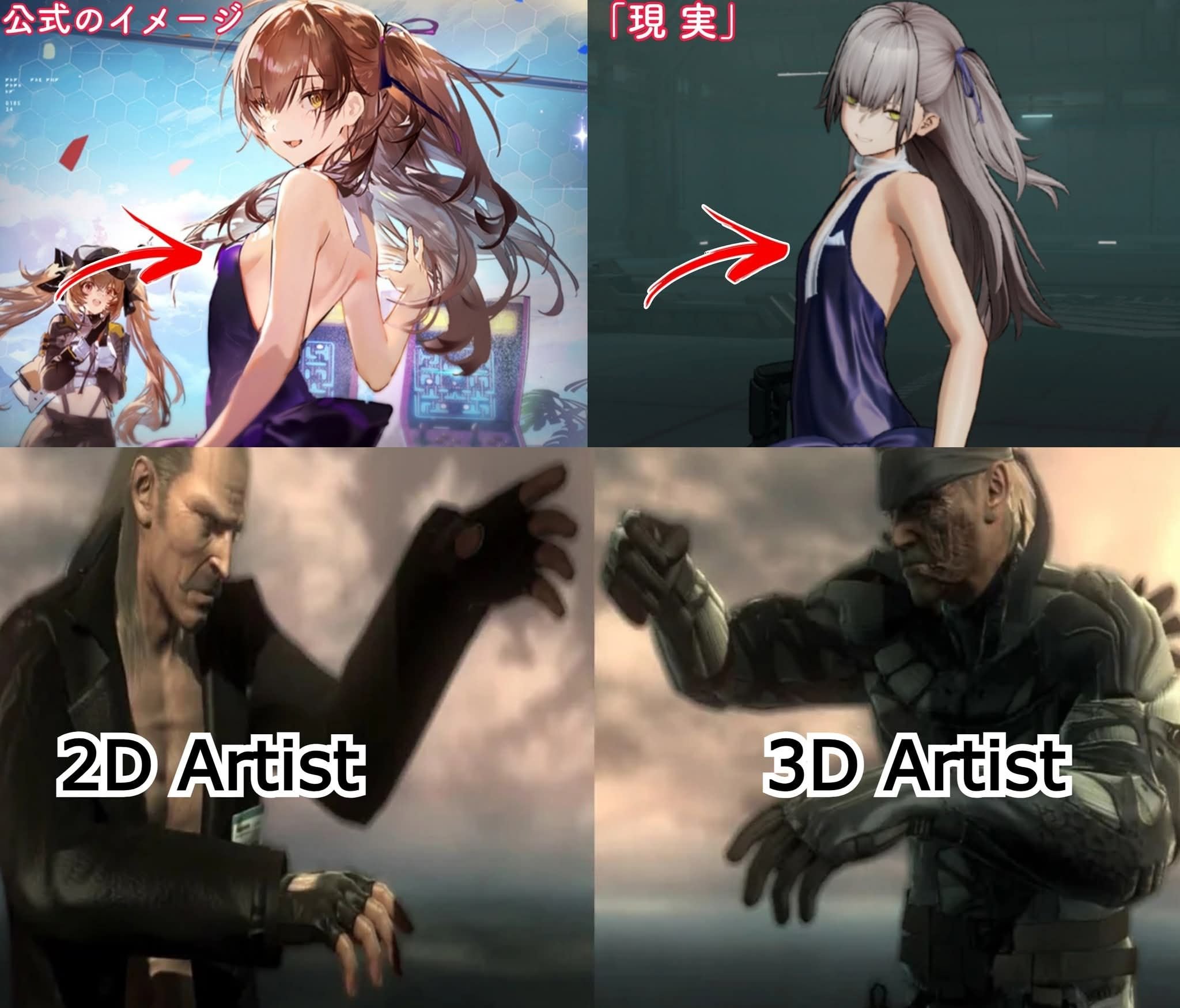 | … | 11126/01/05(月)10:49:11No.1389667073+>死んだ指揮官を蘇らせたければパラデウスに下れと脅迫するウィリアムに従った人形達とあくまで指揮官の遺志に従いパラデウス殲滅の決死作戦を敢行する人形達の元戦友らによる同士討ち⋯ |