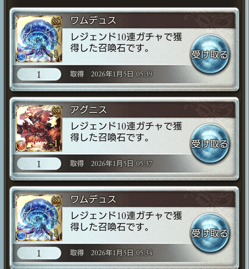 | … | 24826/01/05(月)14:14:50No.1389707098+200連でまさかのSSRが1個でしたわ……しかもシヴァ石だったので金月にもなりませんでしたわ |