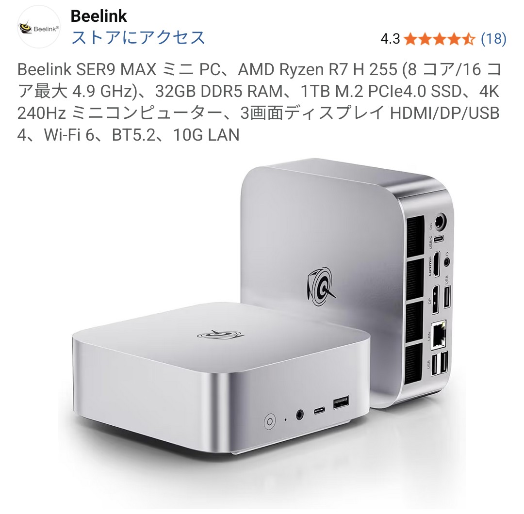 | … | 24526/01/05(月)16:18:28No.1389730131+>画面付きのミニPCの時代がくる! |