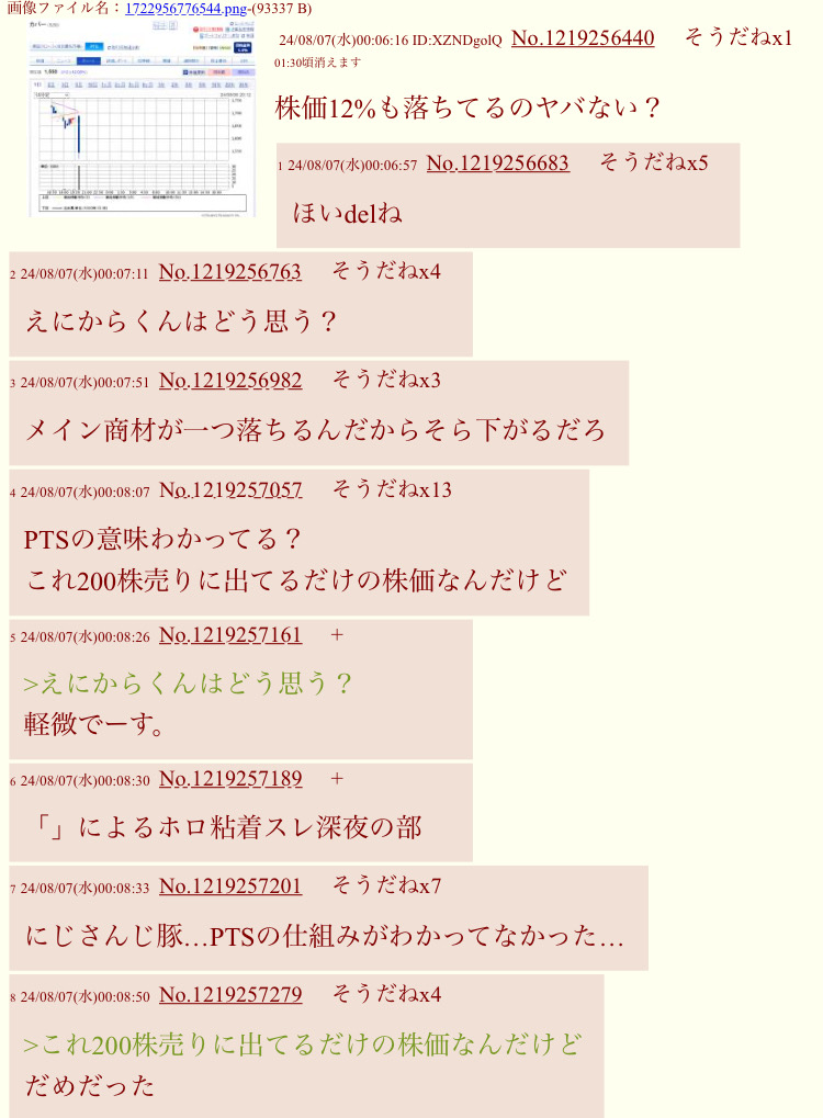 | … | 1426/01/05(月)16:15:46No.1389729633そうだねx5>>えにからは評価されてる企業だから高いとかそんなの全く関係なくお金くれるから釣り上がるしこれ要らないなってなったら下がるだけ |