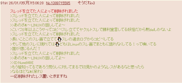 >>あと🐧たちは荒らしにちゃんとdelしような