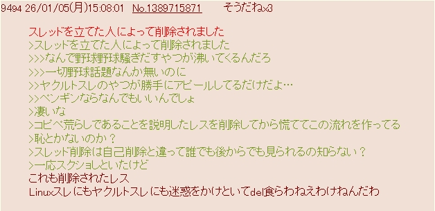>あと🐧たちは荒らしにちゃんとdelしような