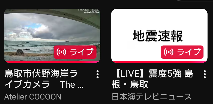 | … | 9226/01/06(火)10:35:24No.1389948689+地震速報の履歴見てると島根に地震ラッシュ来てるんだな |