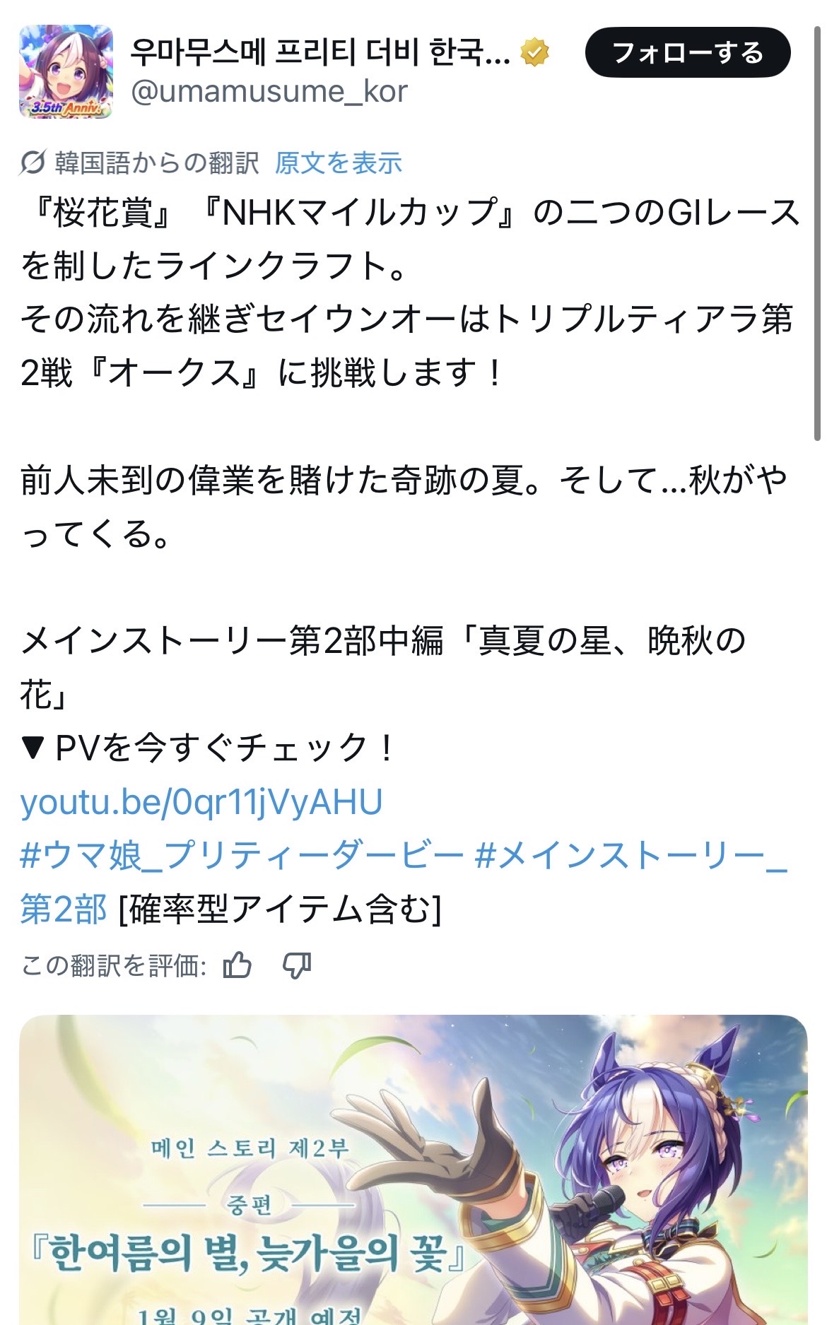 | … | 15826/01/06(火)12:12:35 ID:8k/ghDA.No.1389965367+ステップアップガチャってステイゴールドさんとか特殊なのも対象でしたっけ?アニバまで待つか悩みます |