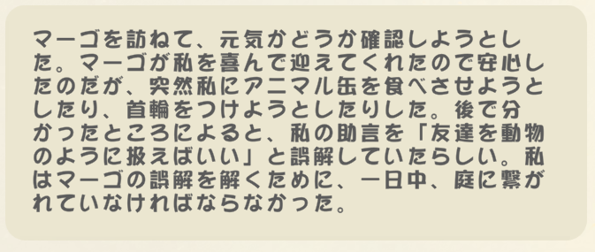 | … | 6926/01/06(火)13:37:10 ID:r1j/6kXwNo.1389985241+エピカちゃんくだらない悪夢とか言い出した辺りであれ…?ってなったにゃん |