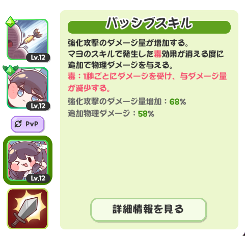 | … | 50626/01/06(火)15:35:40 ID:qoG1vI1gNo.1390007410+マーゴみたいに攻撃力はあまり高くないけどスキルの倍率は高いキャラは格上相手だとあまり輝かないけど同格〜格下相手だと強いにゃん |