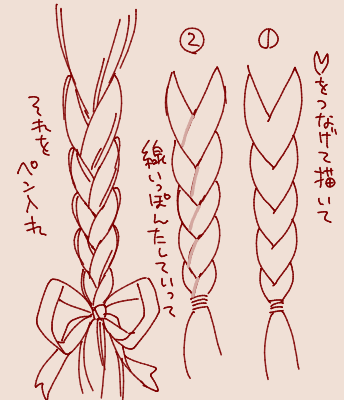 | … | 12926/01/07(水)07:22:06No.1390196583+当たり前だけど前後で編み目の向きが逆になる 見た目いまいちだからかちゃんと上向きに描かれた三つ編みあんまり見ない気はする |