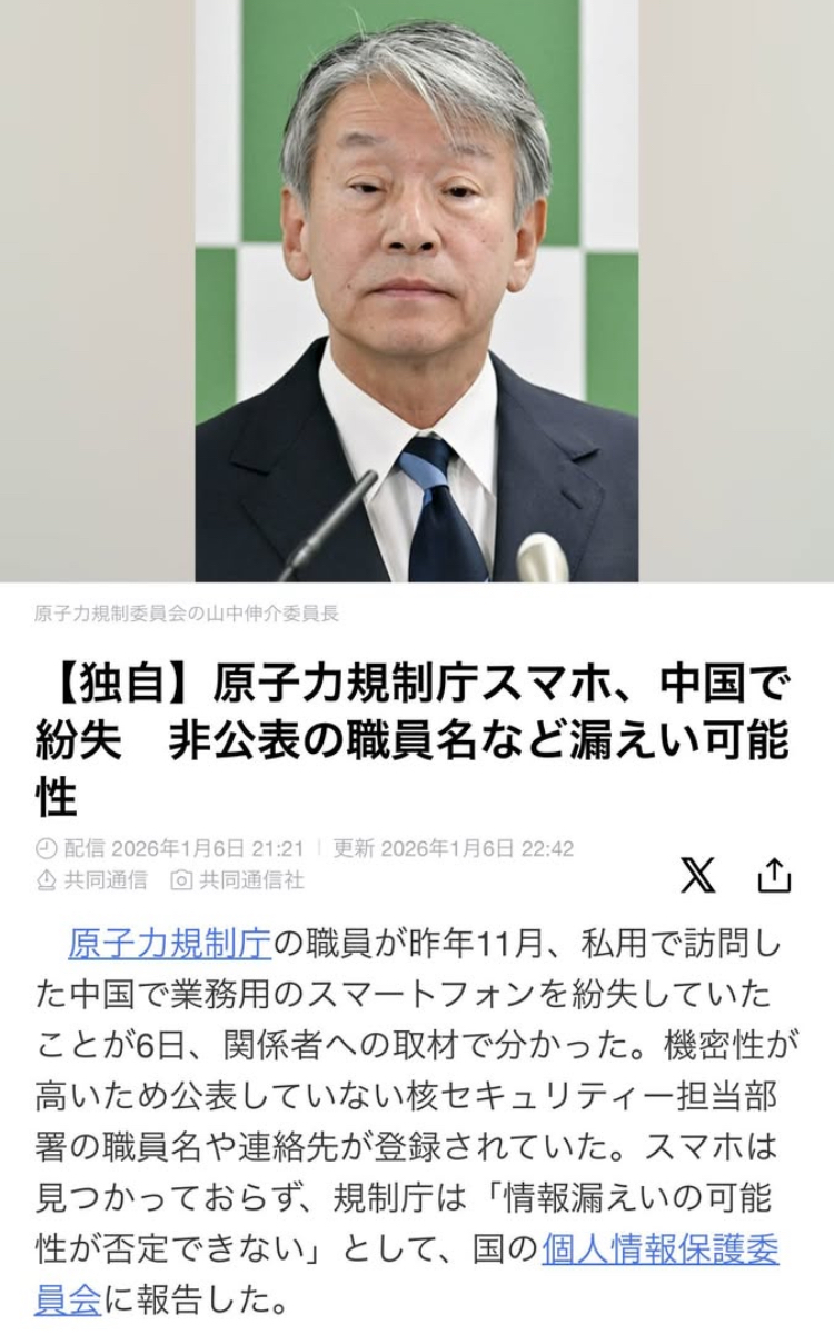 | … | 1226/01/07(水)10:21:20No.1390216527そうだねx20もはや敵国とも言える段階の中国にこのタイミングで私用で言って重要情報入ったスマホを紛失ねぇ |