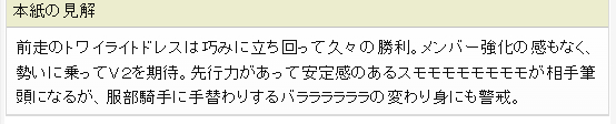 | … | 52726/01/07(水)13:53:45 ID:7/07NTPkNo.1390260197+>まではまあ順当ですが4位5位は最近競馬見始めた人は当てるの無理ゲーだと思います |